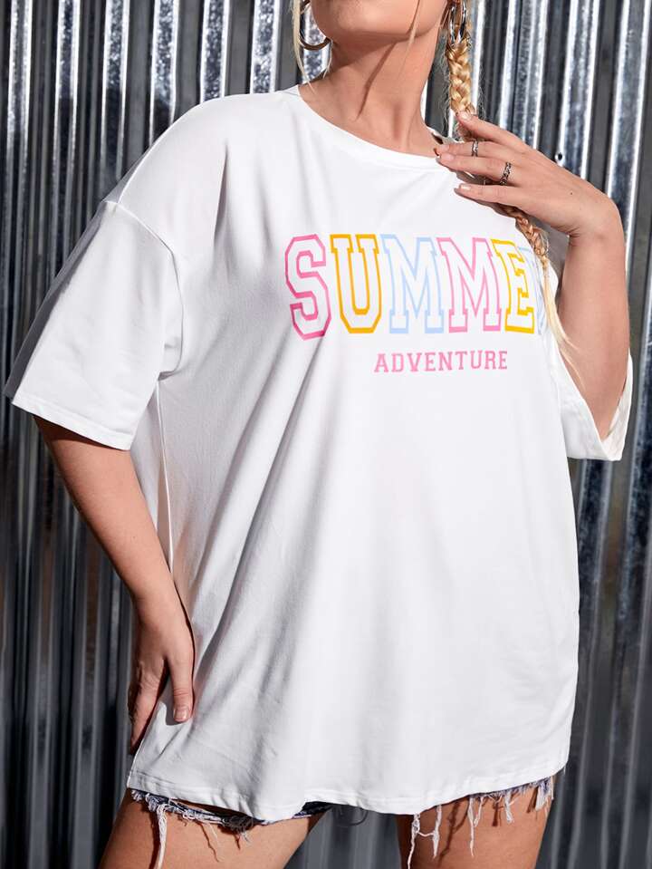 Drop Shoulder T-Shirt mit Buchstaben Grafik