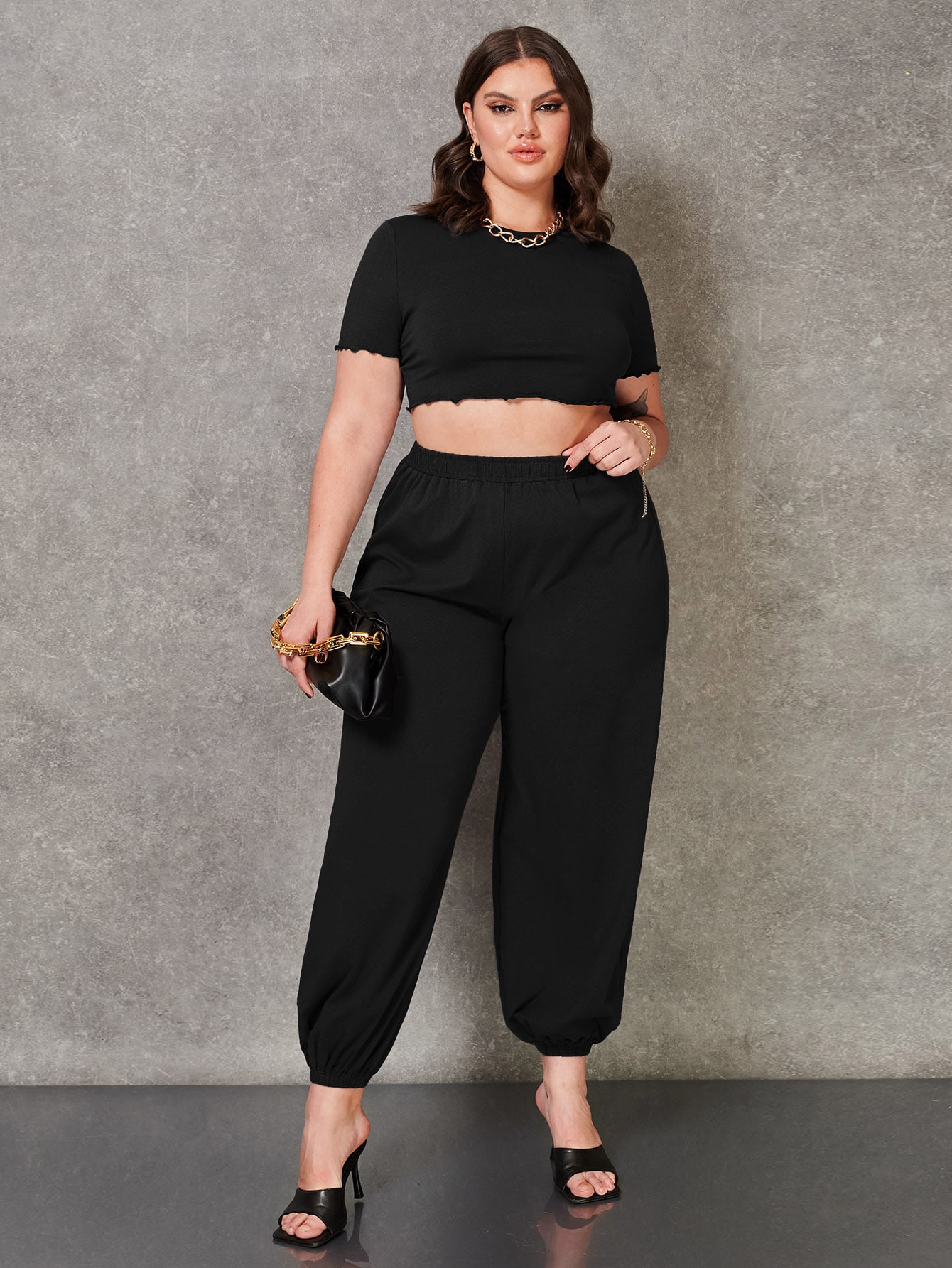 Crop Top mit gewelltem Besatz & Jogginghose