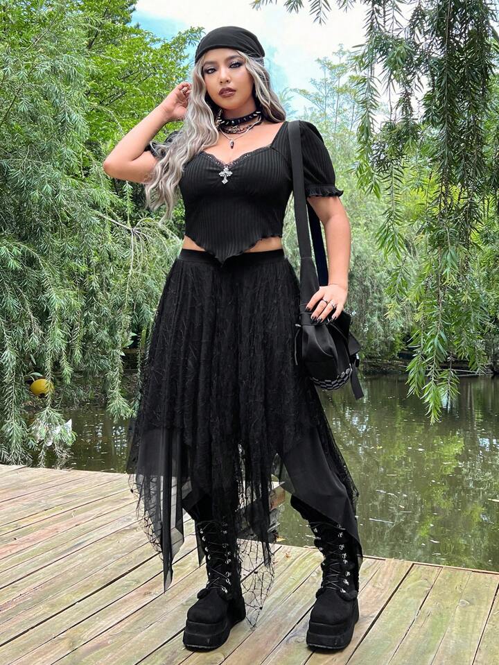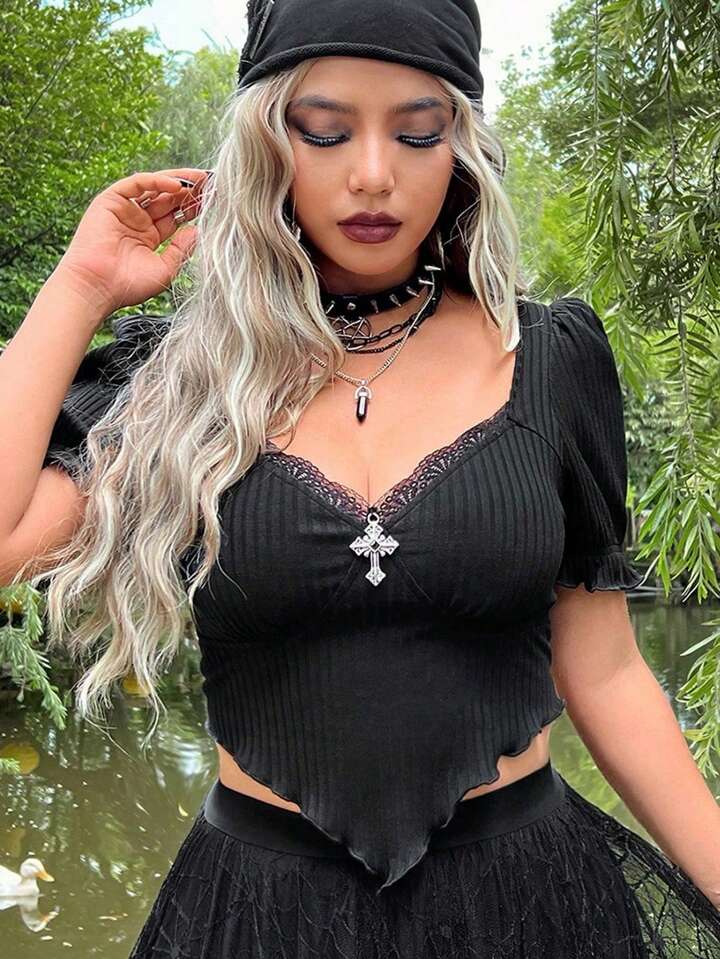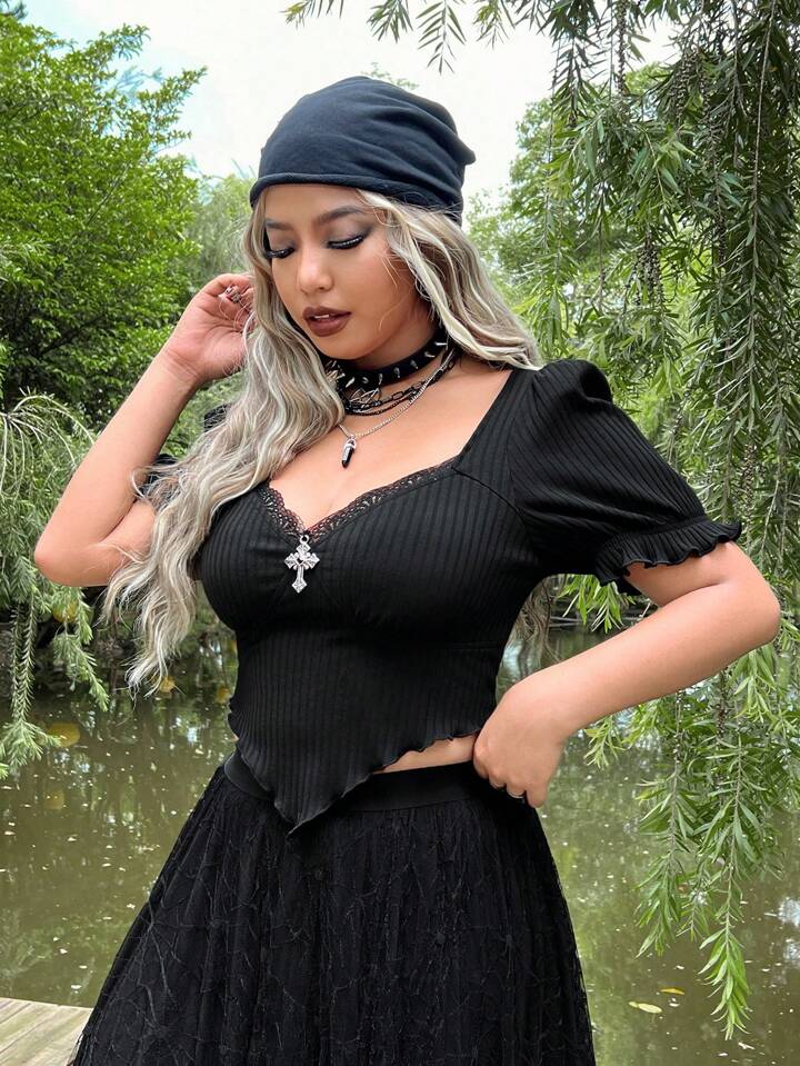 T-Shirt mit Wellensaum, Puffärmeln, Zipfelsaum,