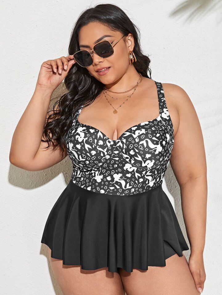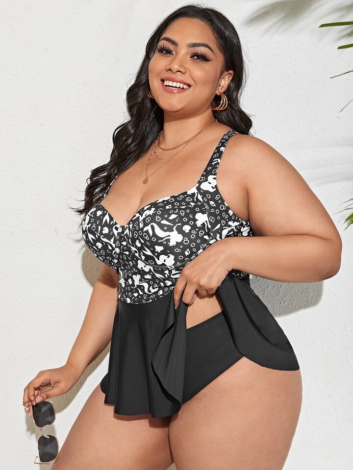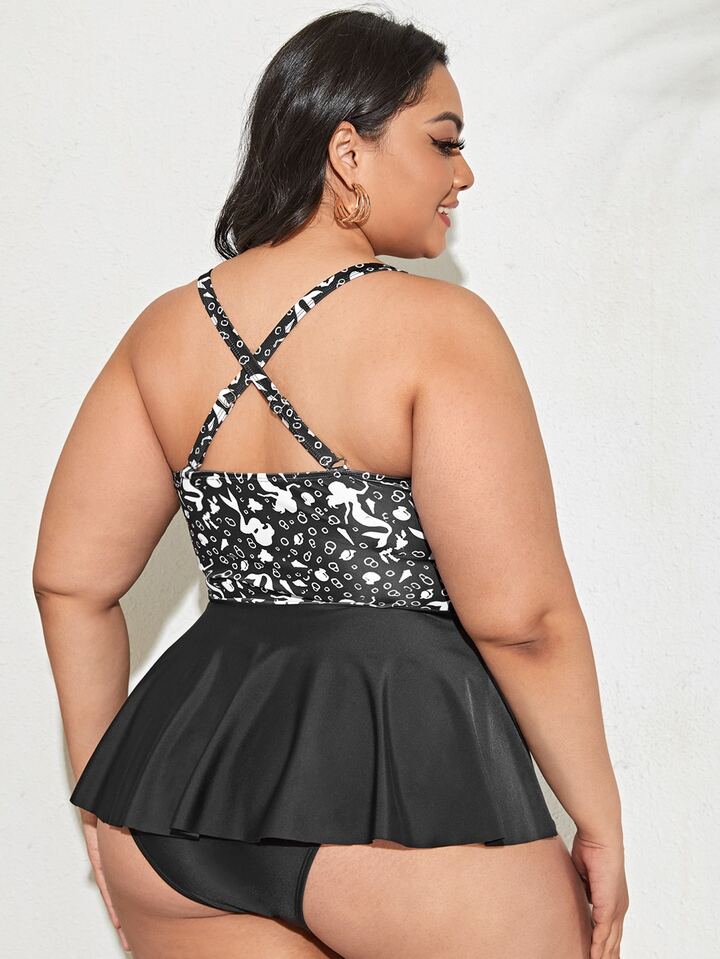 Große Größen Meerjungfrau Muster Unterrock Tankini Badeanzug für den Sommer