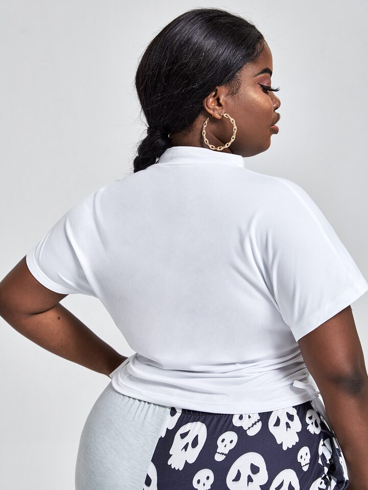 T-Shirt mit Stehkragen, seitlichem Schnürzug