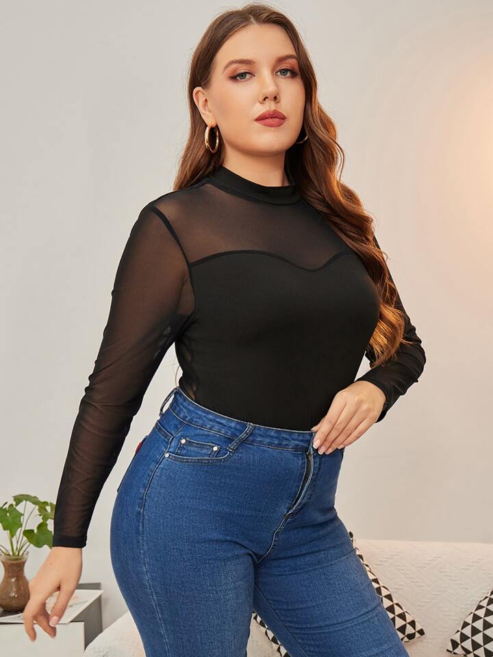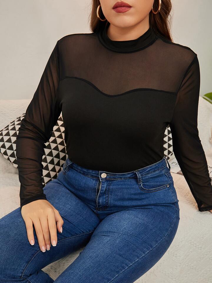 Top mit Stehkragen, Mesh