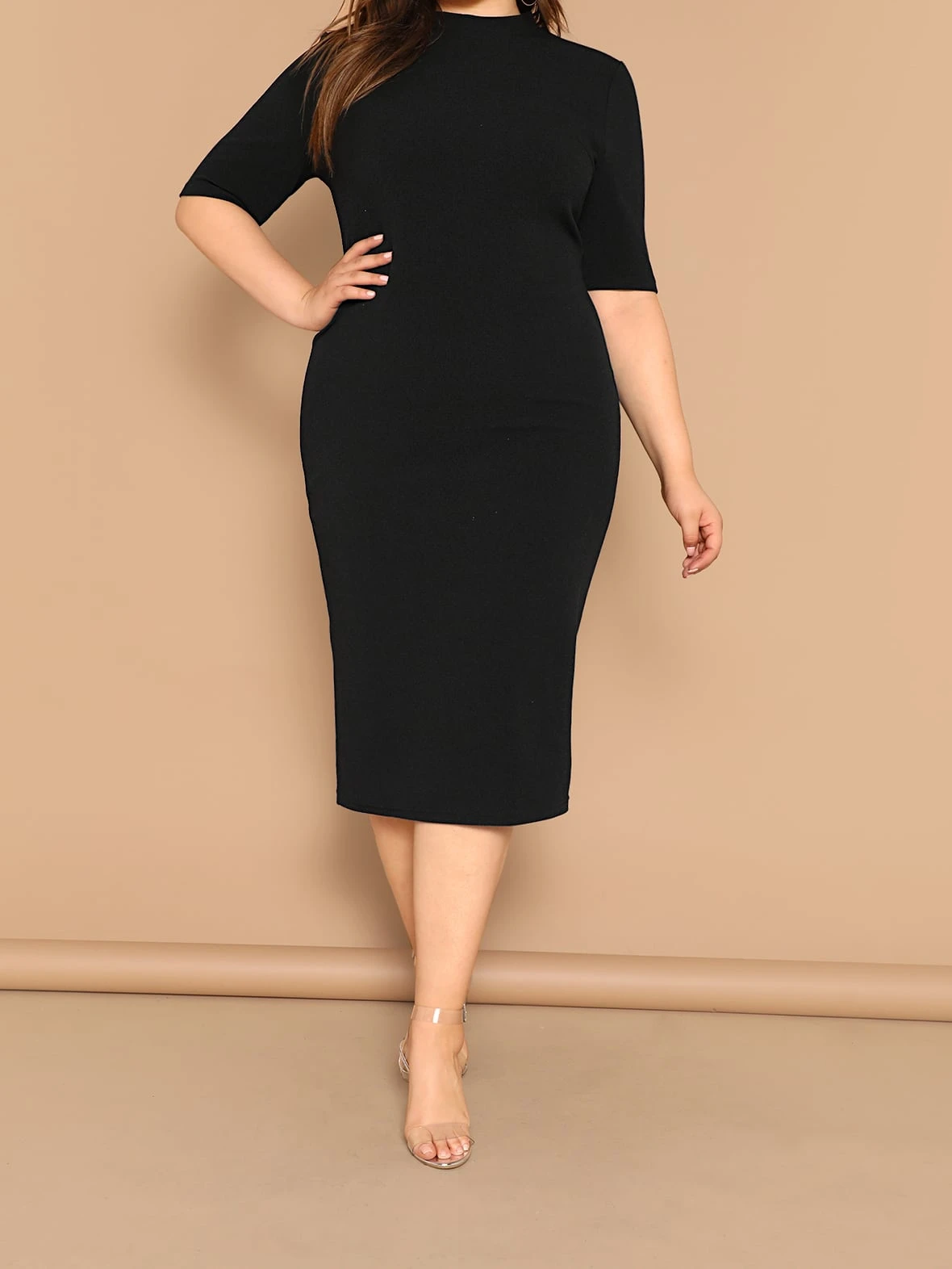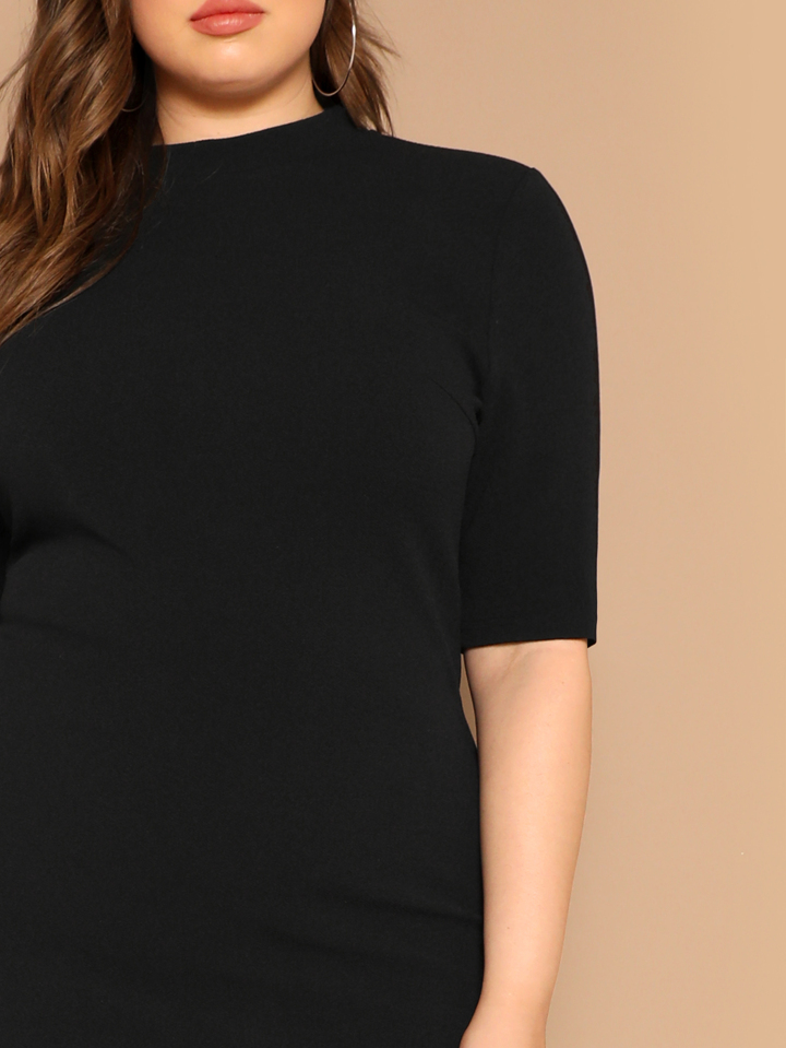 Einfarbiges Bleistift Kleid mit Stehkragen