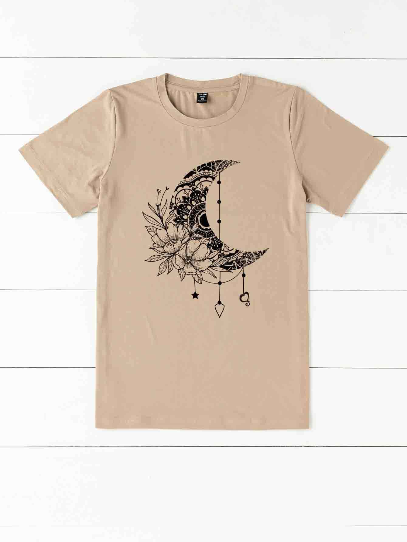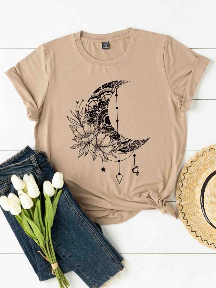 T-Shirt mit Mond & Blume Muster