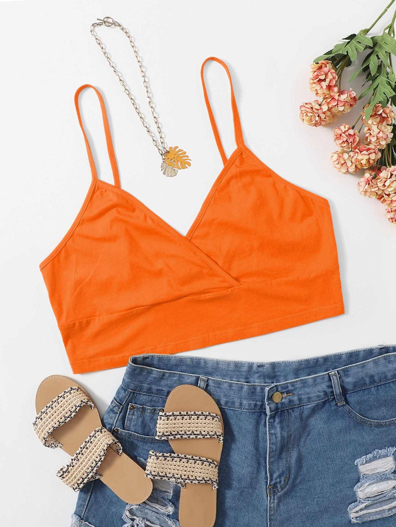 Einfarbiges Crop Cami Top mit überlappendem Kragen
