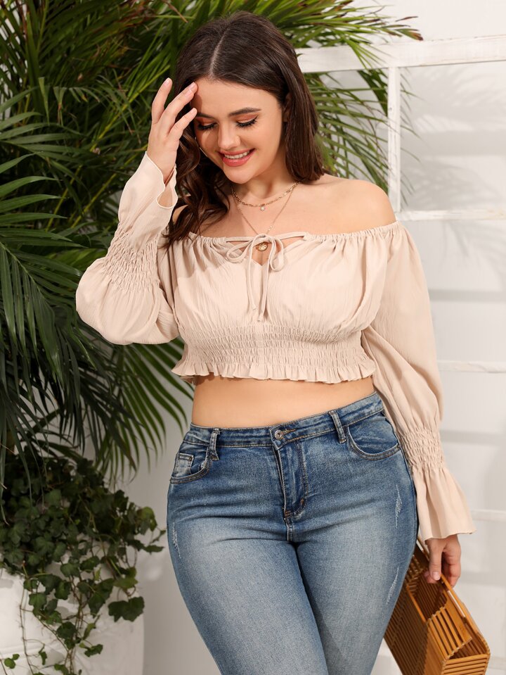 Bluse mit Rüschen, Volant Ärmeln, Band vorne