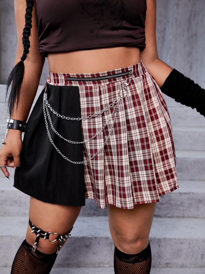 Faltenrock mit Plaid Kette, Reißverschluss vorn