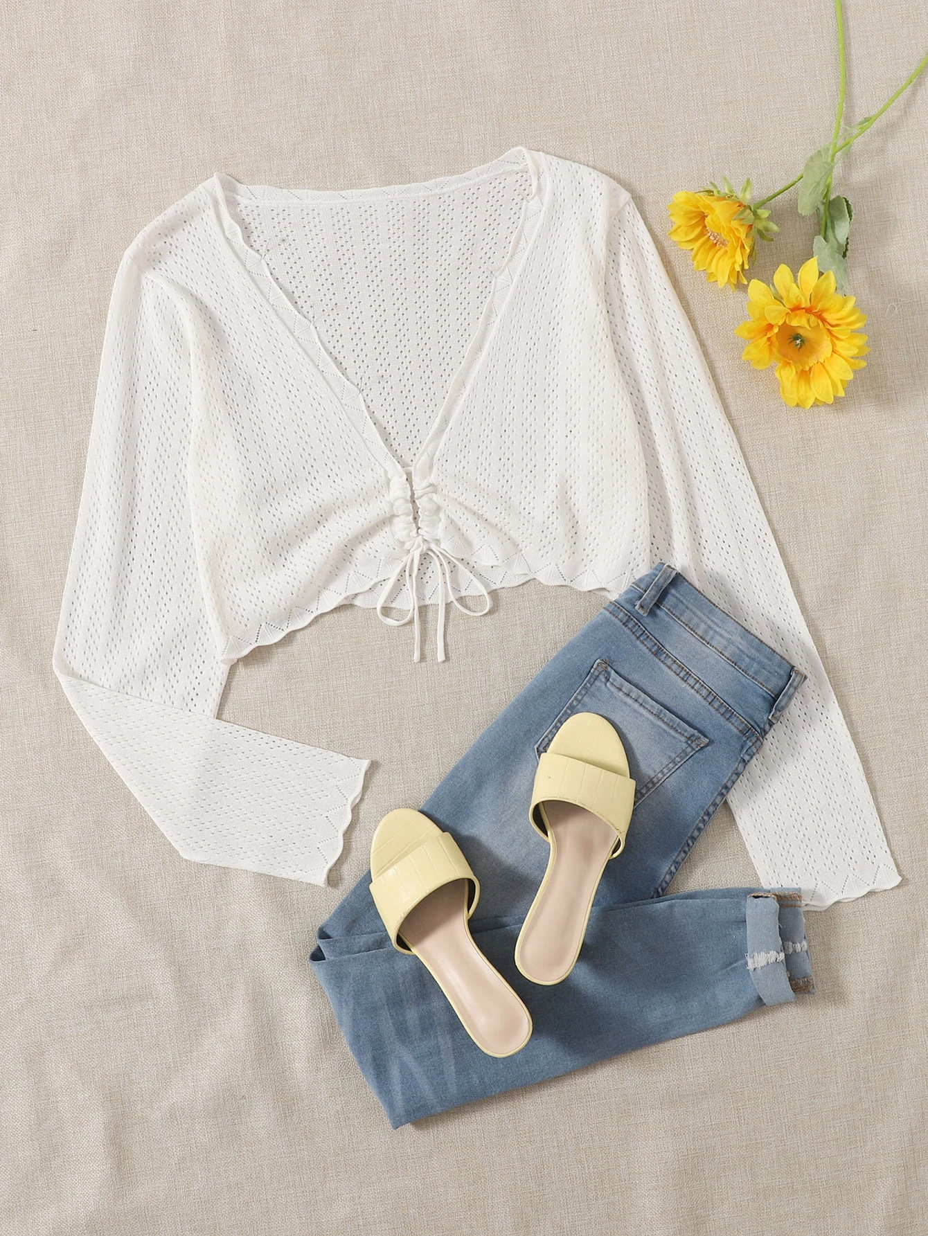 Pointelle Strickjacke mit Schnürzug vorne