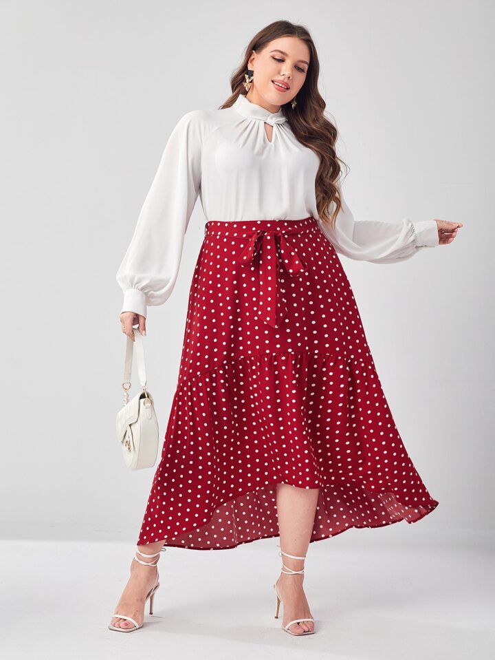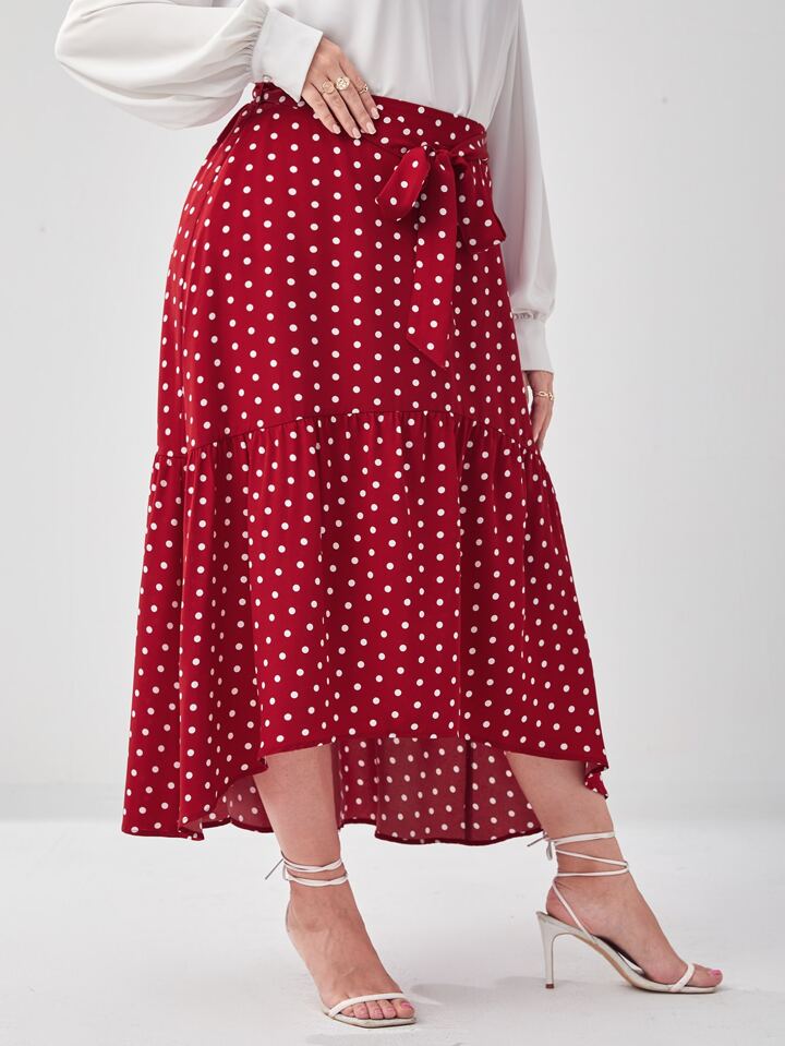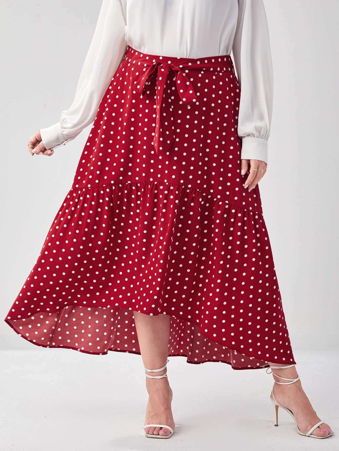 Rock mit Punkt Muster, Stufensaum, Gürtel,