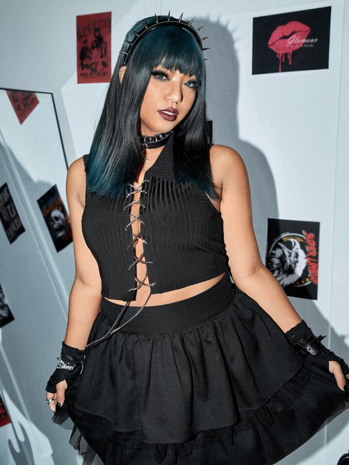 Tank Top mit Strass, Kette, Band vorne