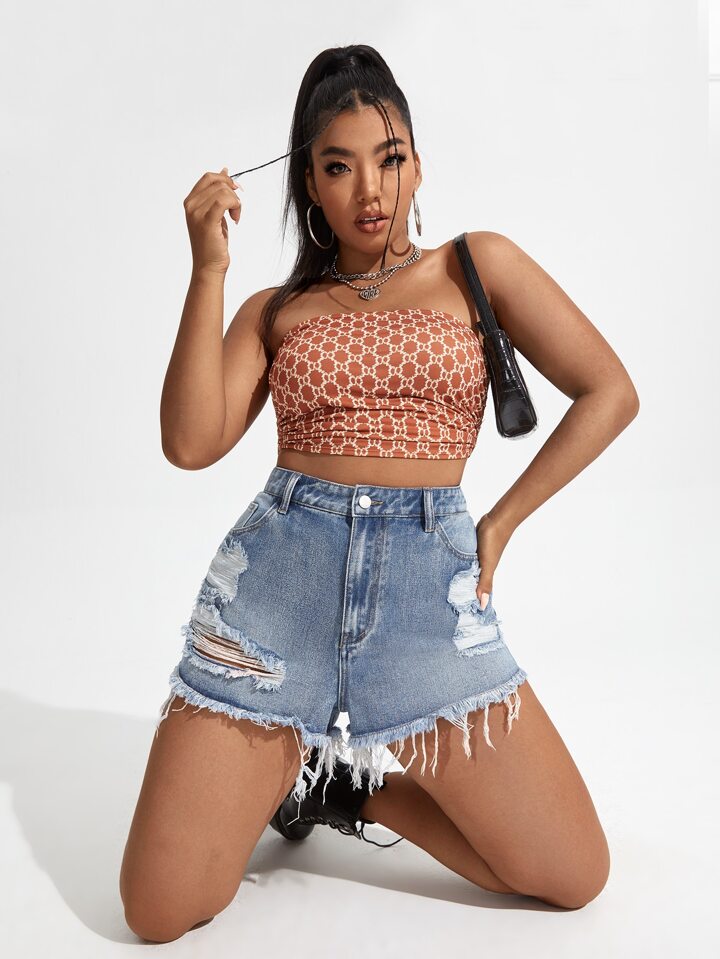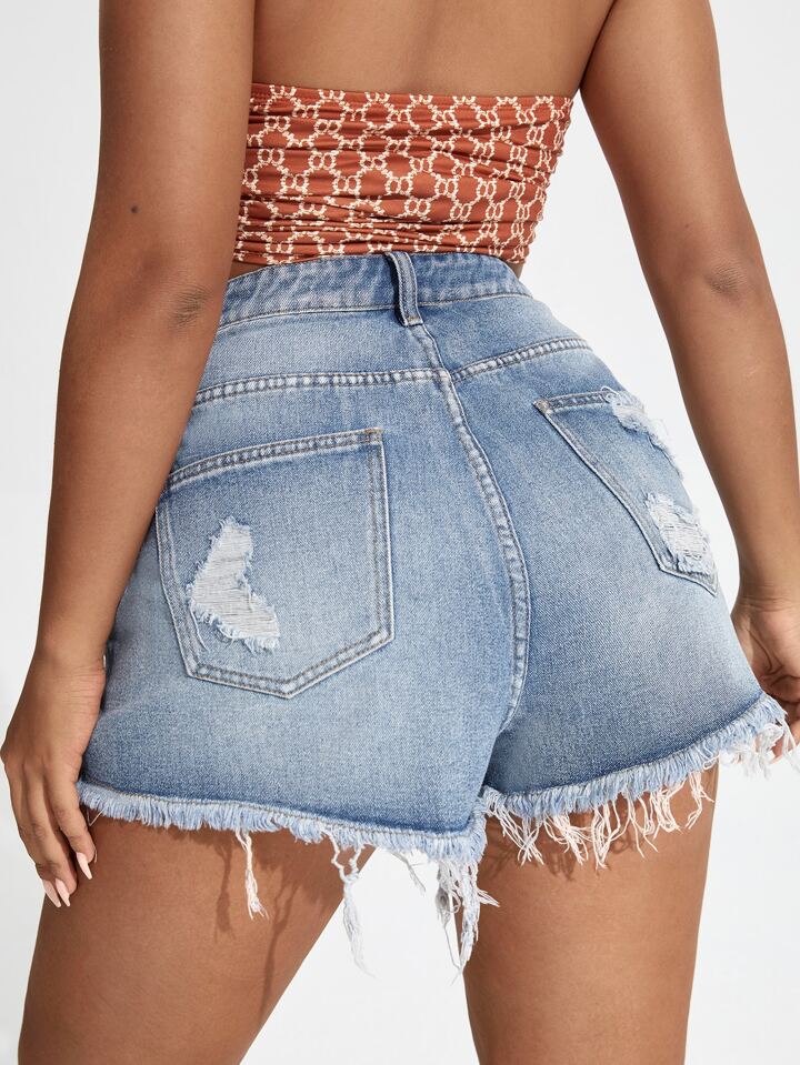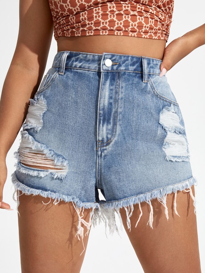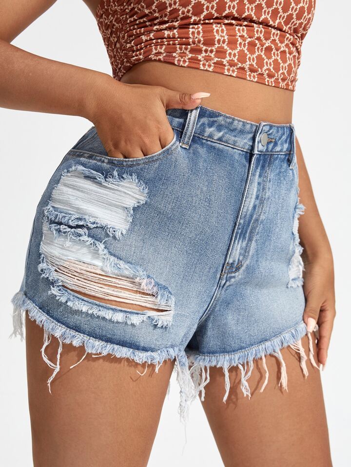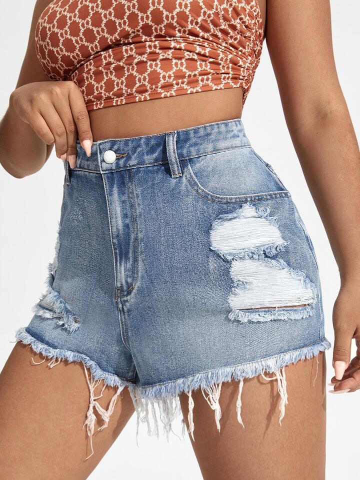 Denim Shorts mit Riss, rohem Saum