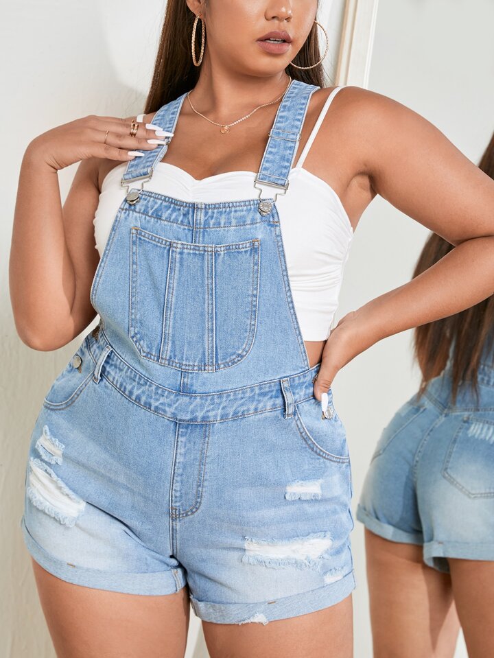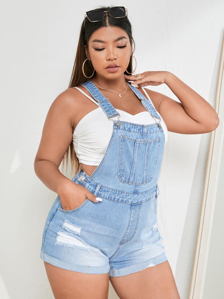 Denim Overall Romper mit Riss, gerolltem Saum, ohne Top