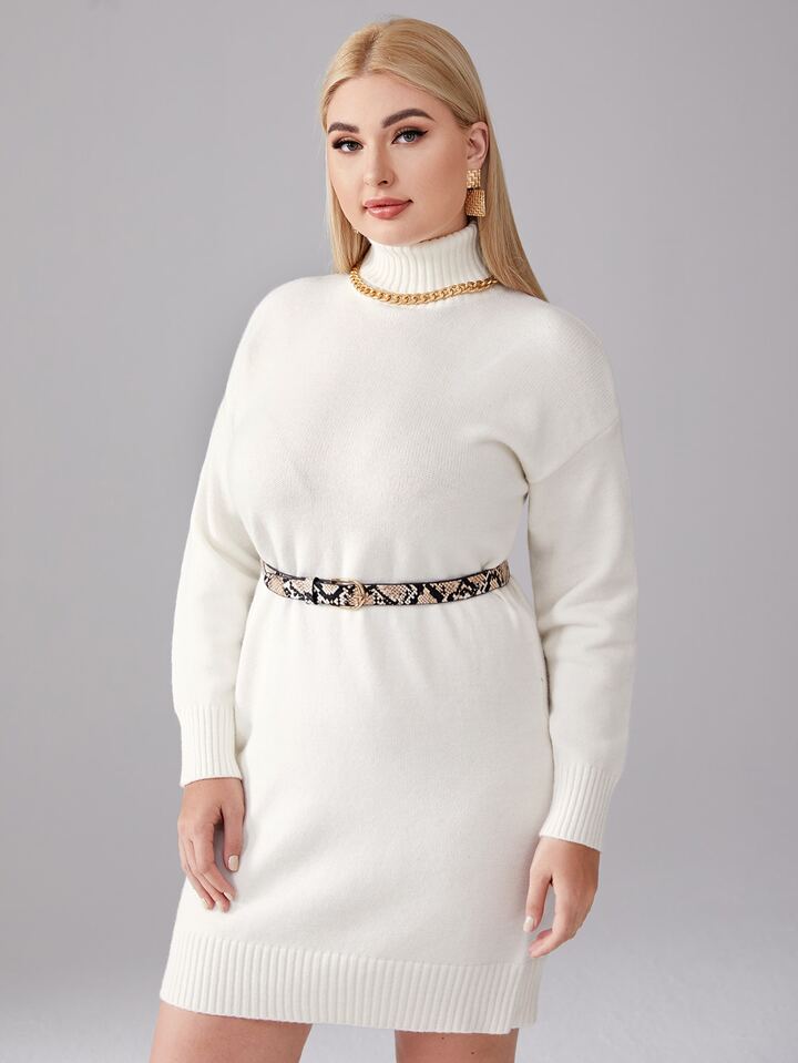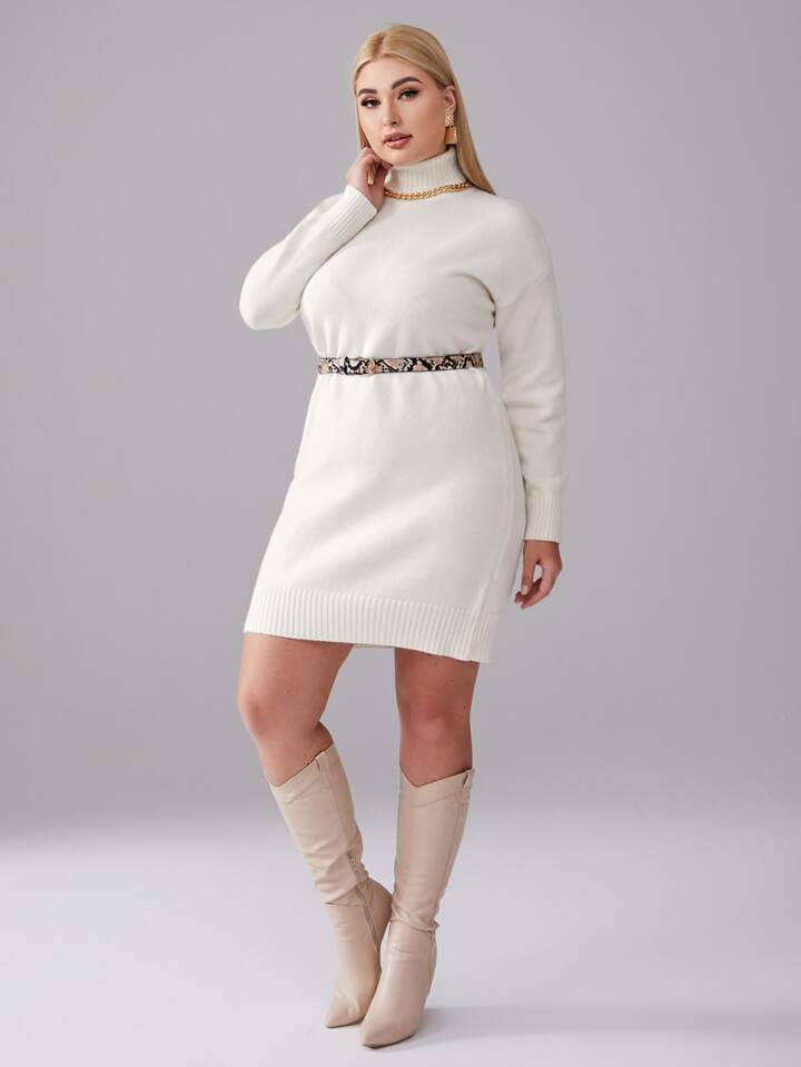 Pullover Kleid mit Rollkragen ohne Gürtel