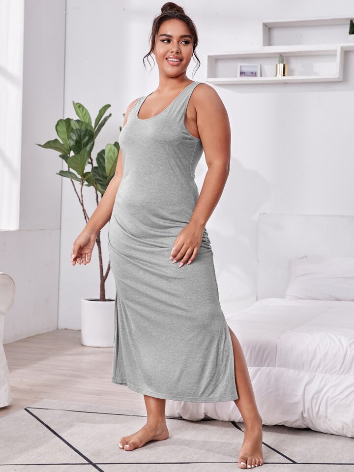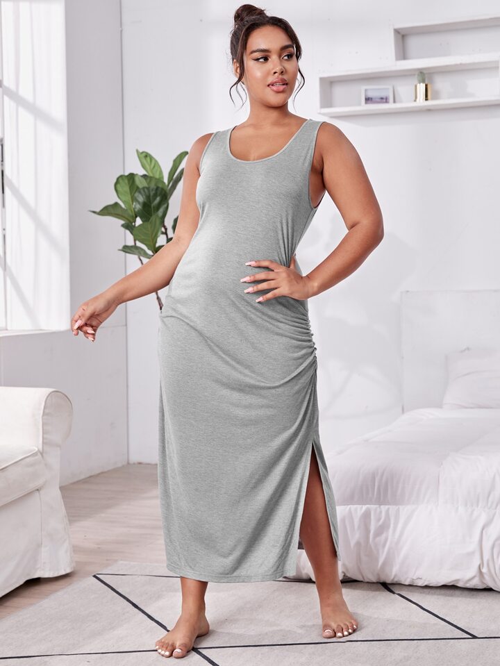 Gerüscht Einfarbig Lässig Große Größen - Nachthemden