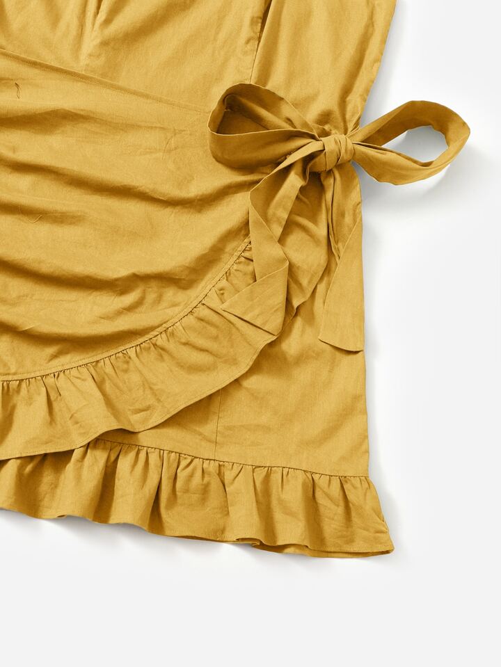 Kleid mit Rüschenbesatz, seitlichem Knoten