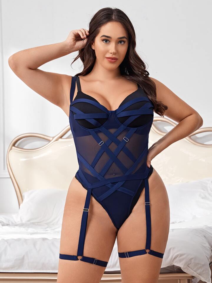 Große Größen 2er-Pack Bodysuit mit Kreuzgurten und Mesh, Teddy