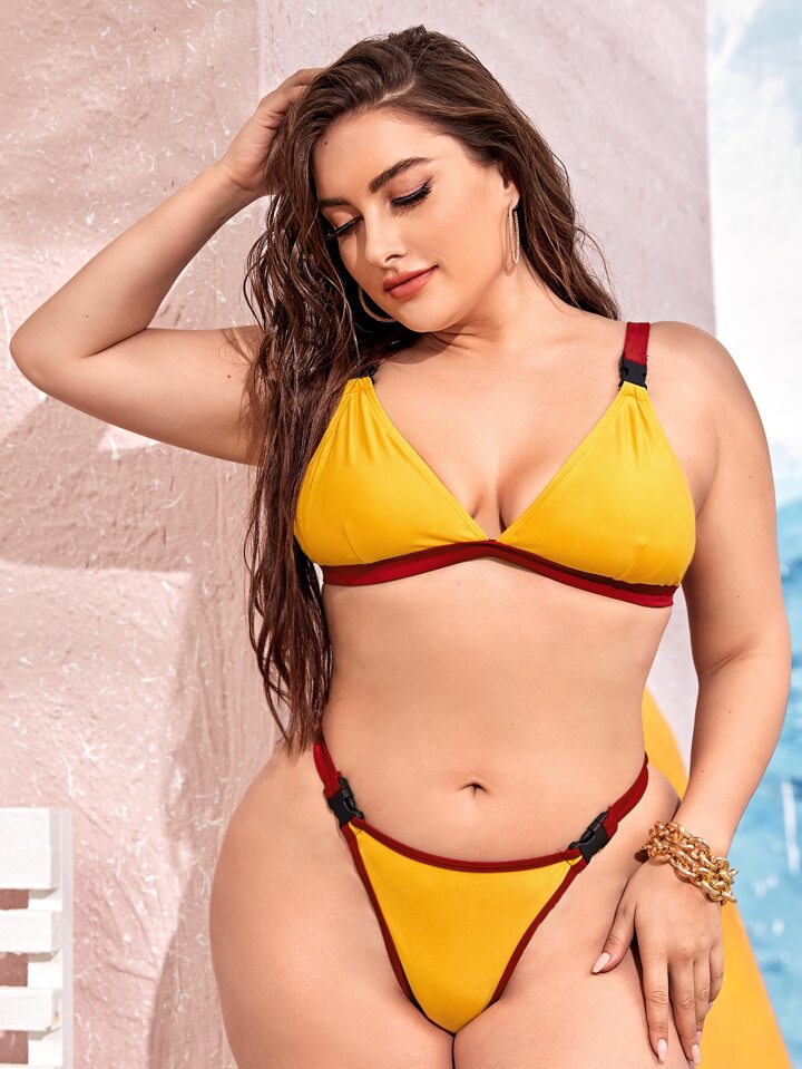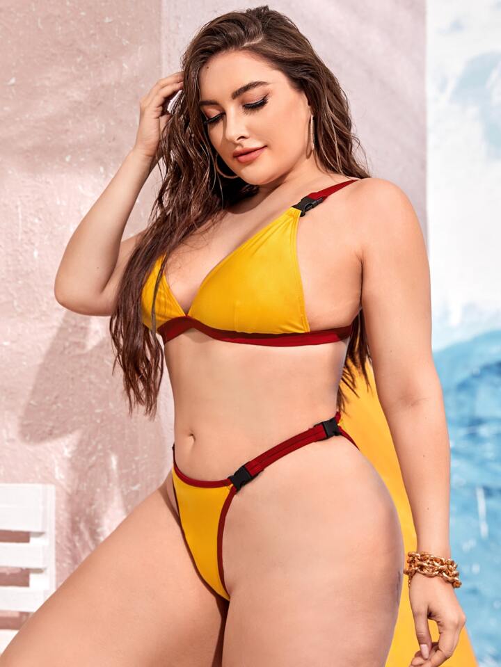 Große Größen Bikini Set mit Triangel Höschen und Schnallen Detail für den Sommer Strand