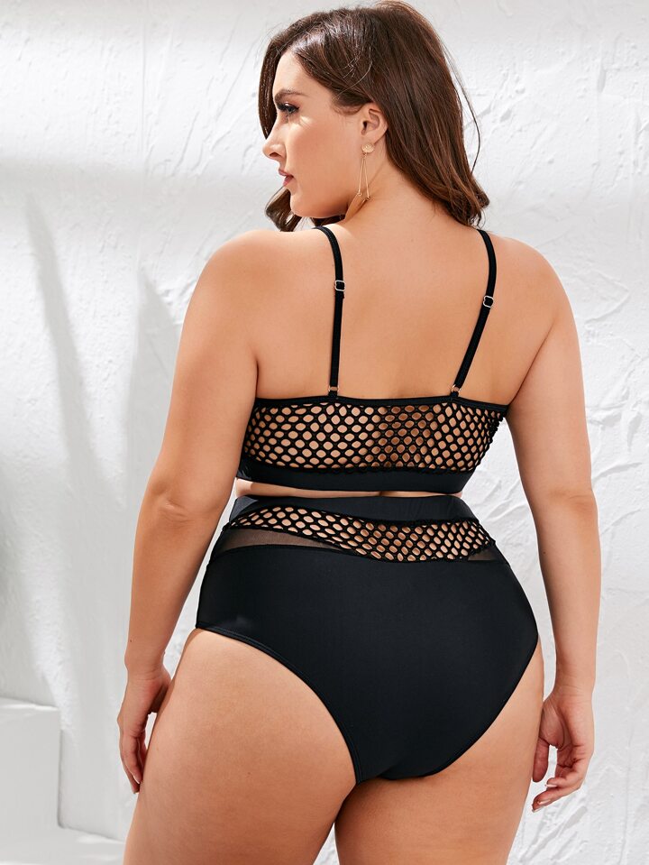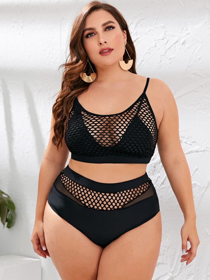 Große Größen Bikini Set mit Netz-Einsätzen, Sommer Strand