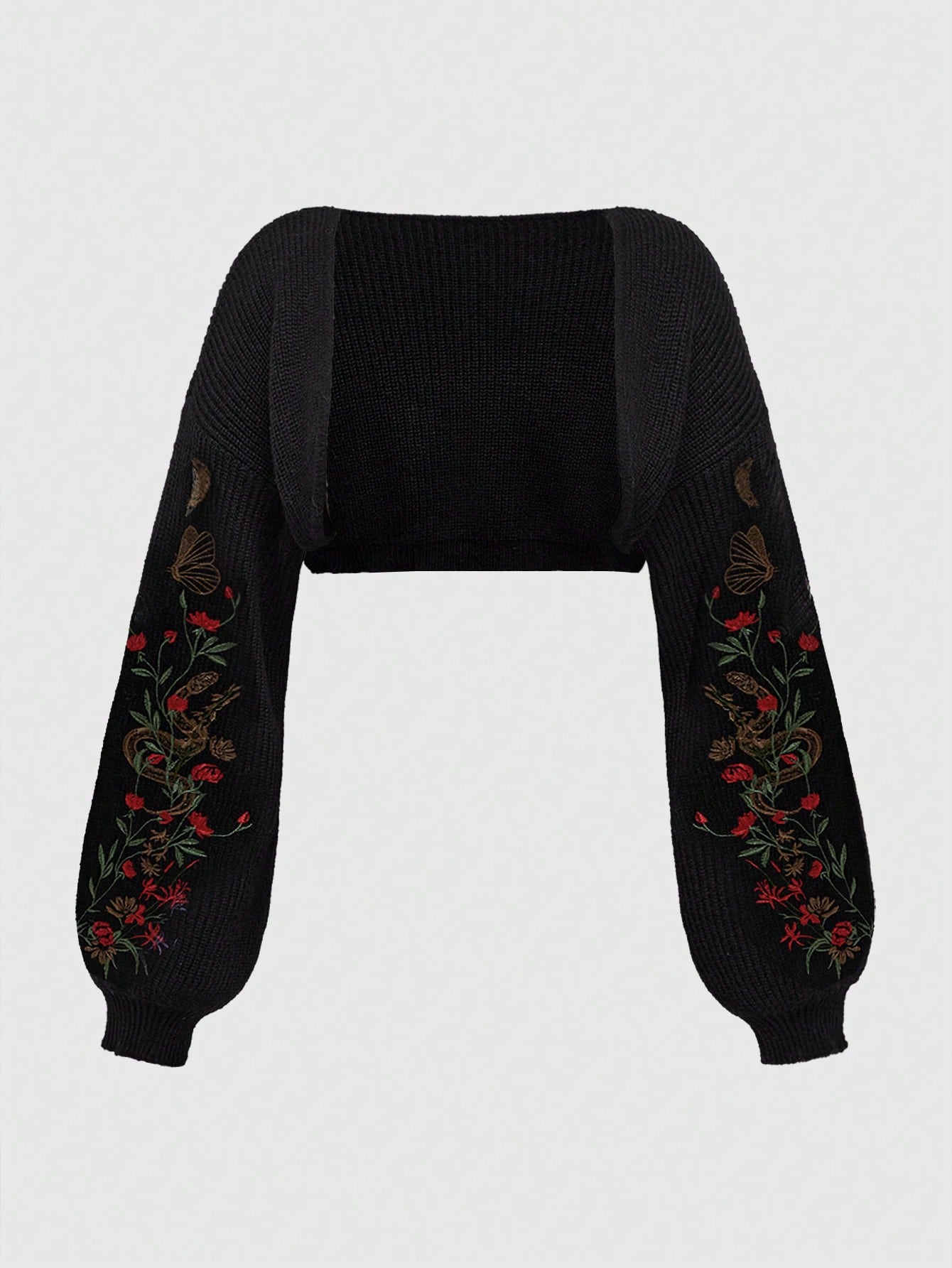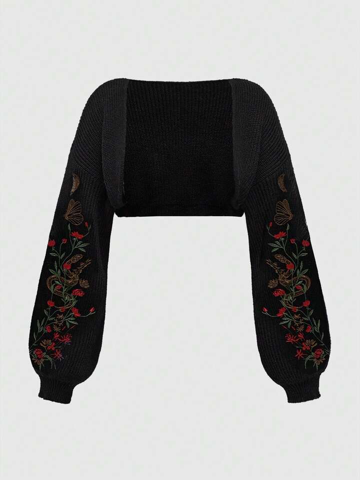 Große Größen Gothic Botanik Schlangen Stickerei Kurz-Cardigan