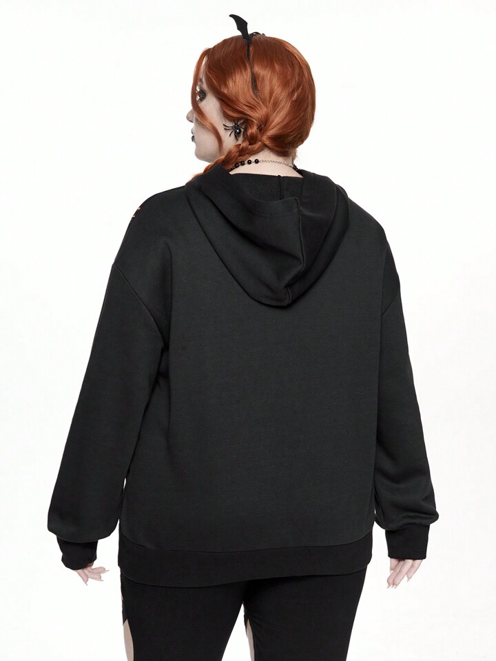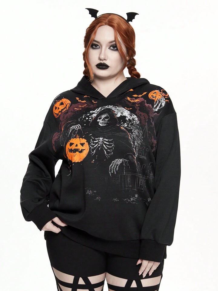 Große Größen Halloween Pullover Hoodie mit Kürbis-, Fledermaus- und Skelettdruck, Herbstmode