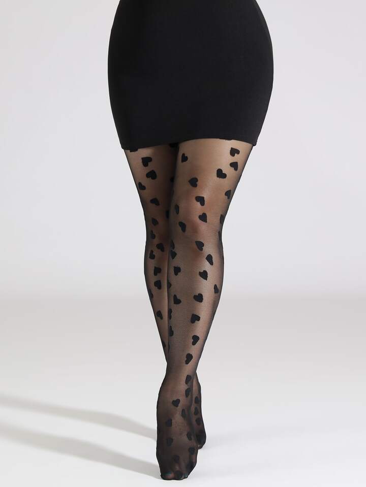 Schwarze Strumpfhose mit Herzmuster in Übergröße