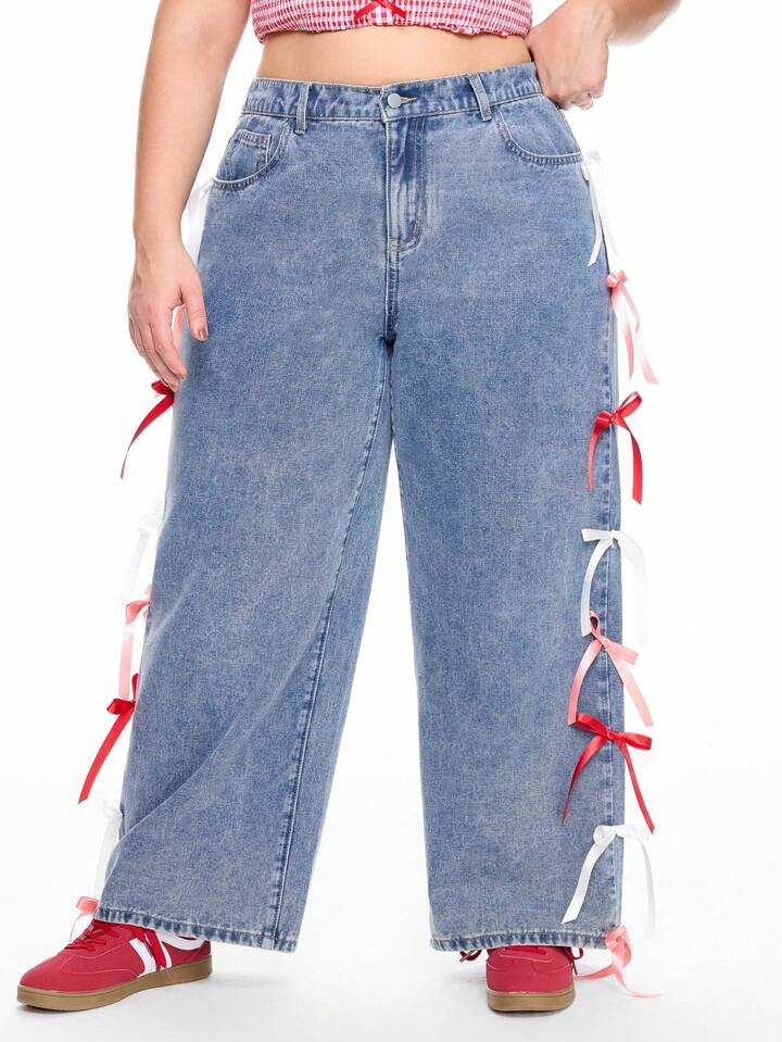 Große Größen Kawaii Schleife Dekor Jeans