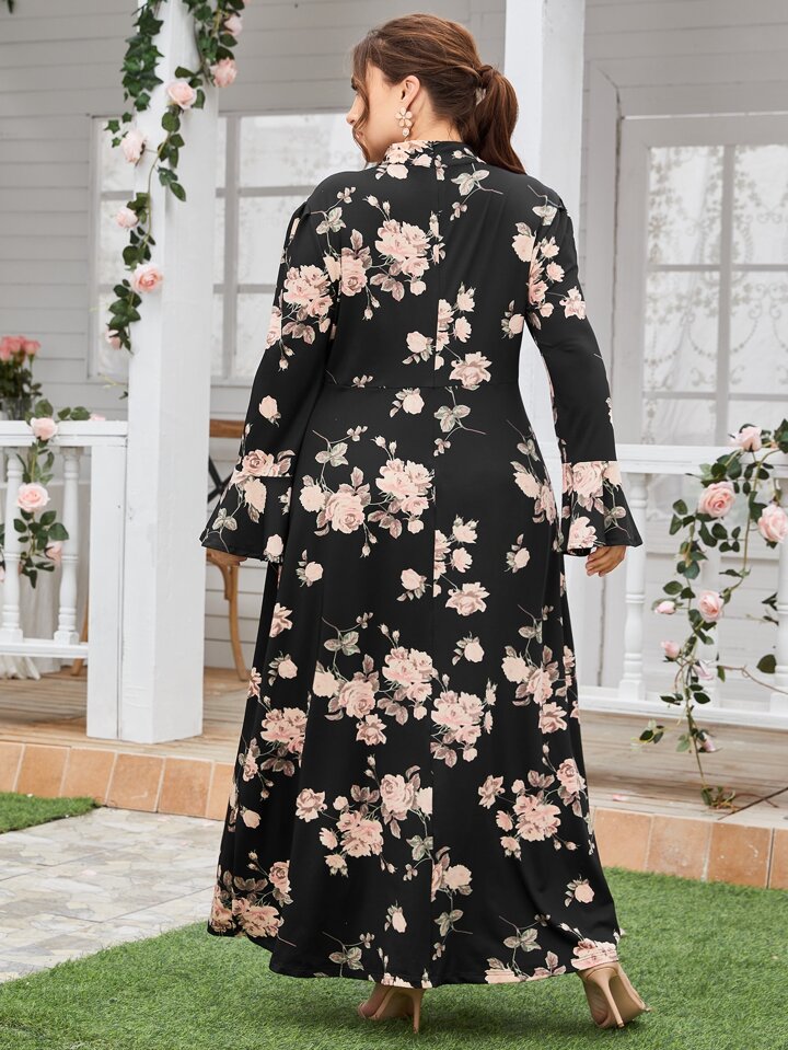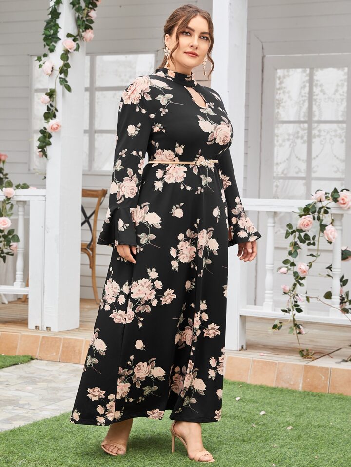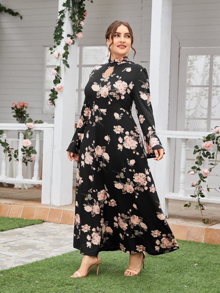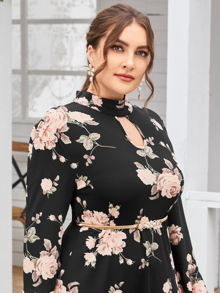 Großgrößen-Kleid mit Schlüsselloch-Ausschnitt und Blume Muster