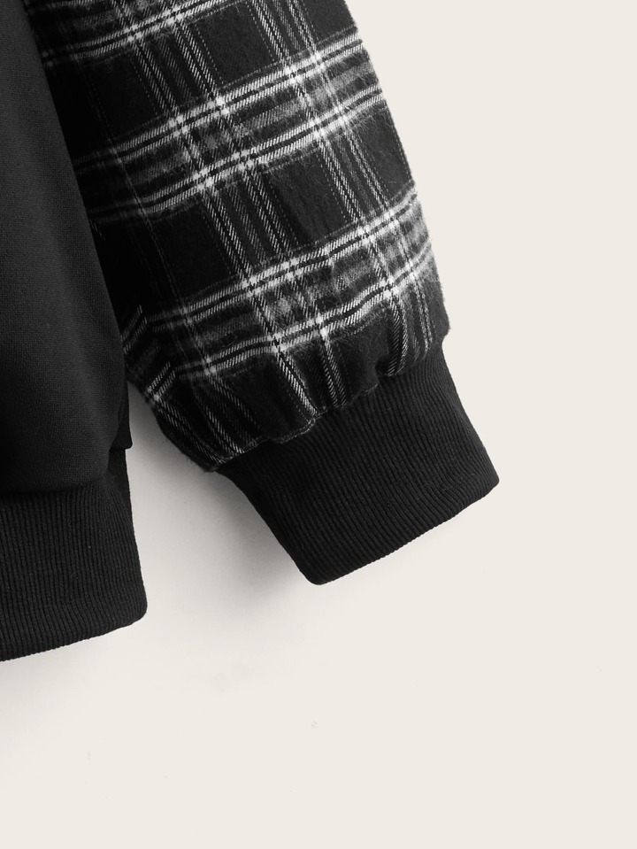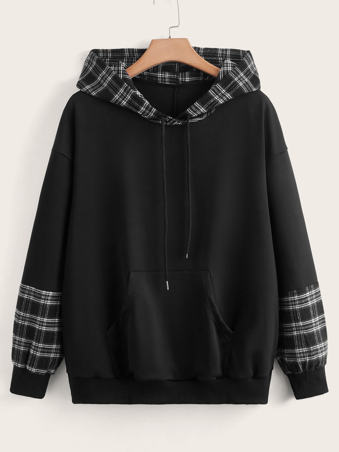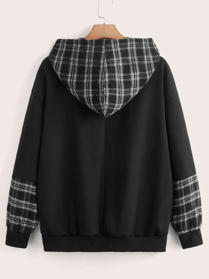 Große Größen Karomuster Panel Taschen Kapuzenpullover mit Kordelzug für Herbst/Winter