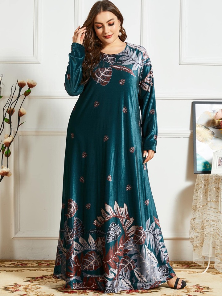 Maxikleid mit Pflanzendruck in Große Größen