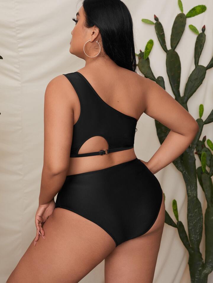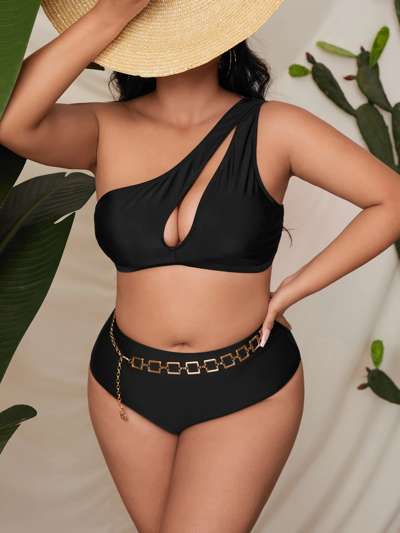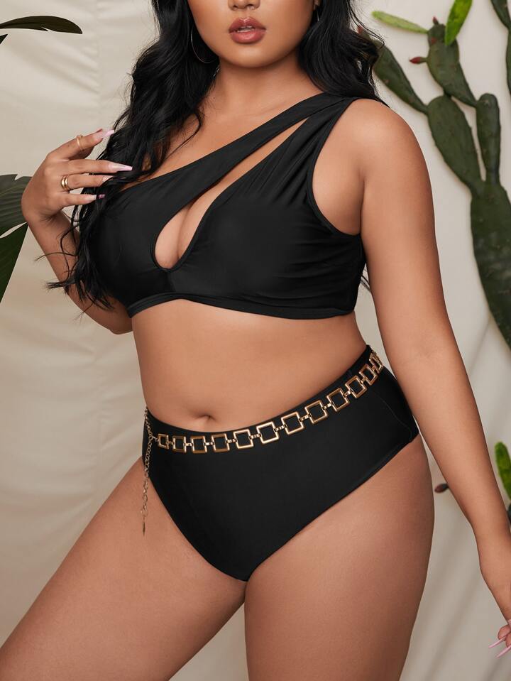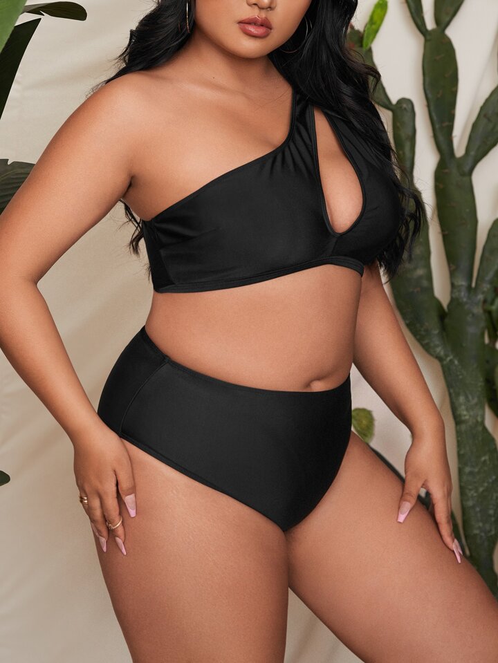 Solide Bikini-Set mit einem Schulterträger in Große Größen für den Sommerstrand