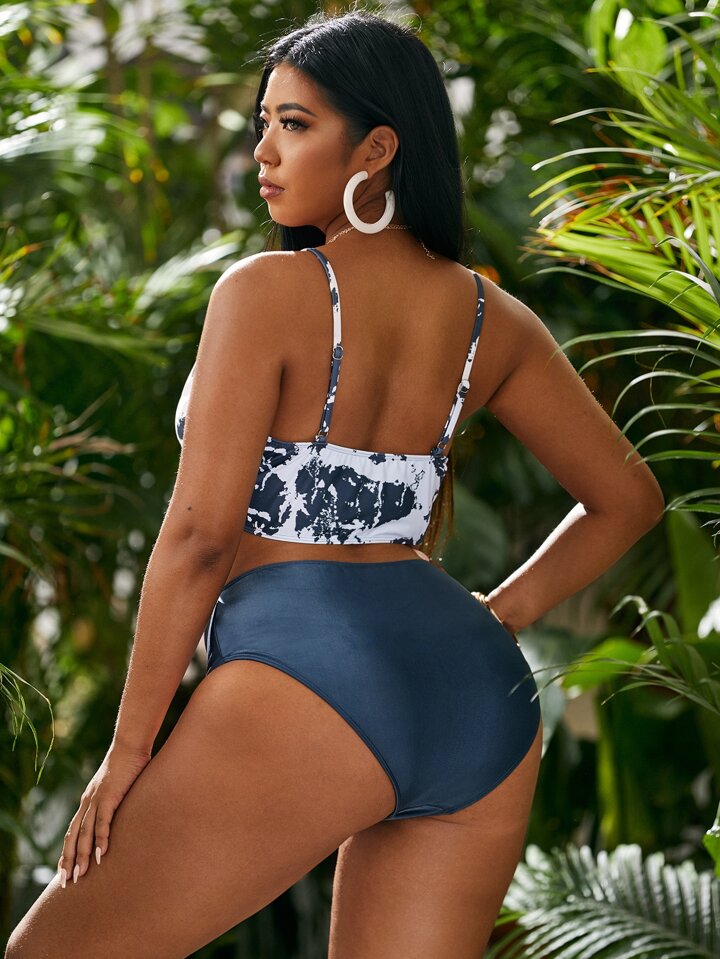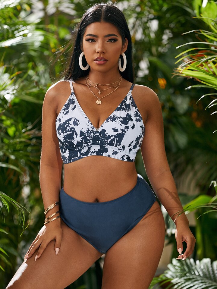 Große Größen Batik High-Waist Bikini Set für den Sommer am Strand