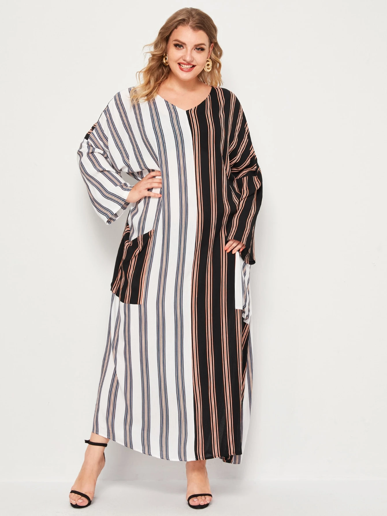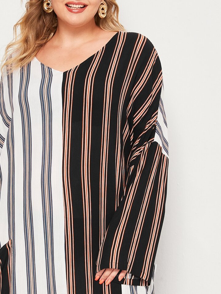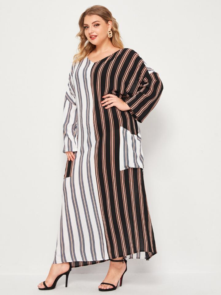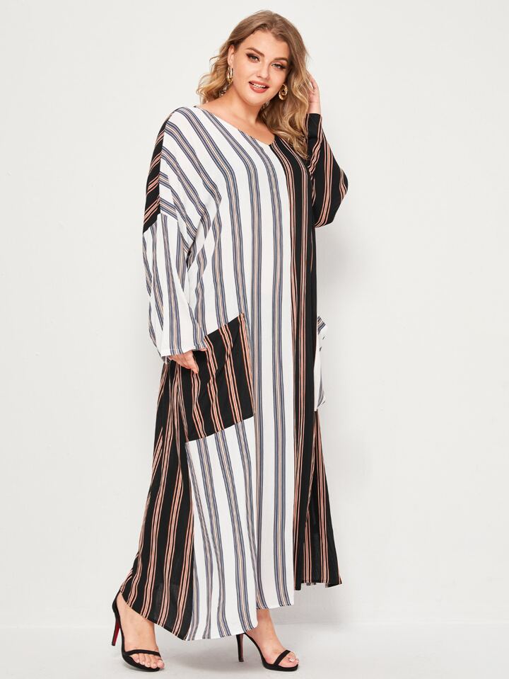 Große Größen Vertikal gestreifte Oversized Kleid mit Seitenstreifen