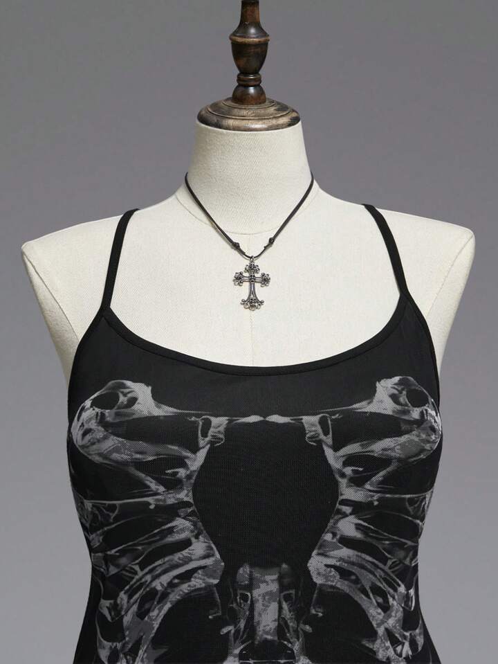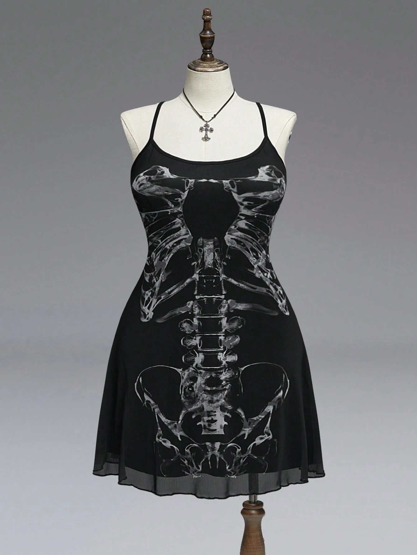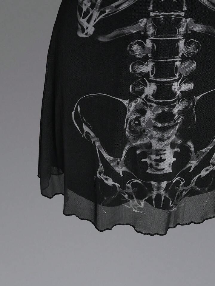 Vintage romantisches dunkles Gothic Skelett Knochen Korsett Träger Kleid in Große Größen
