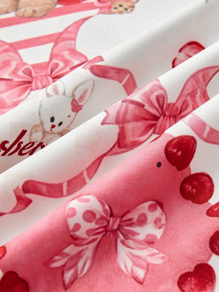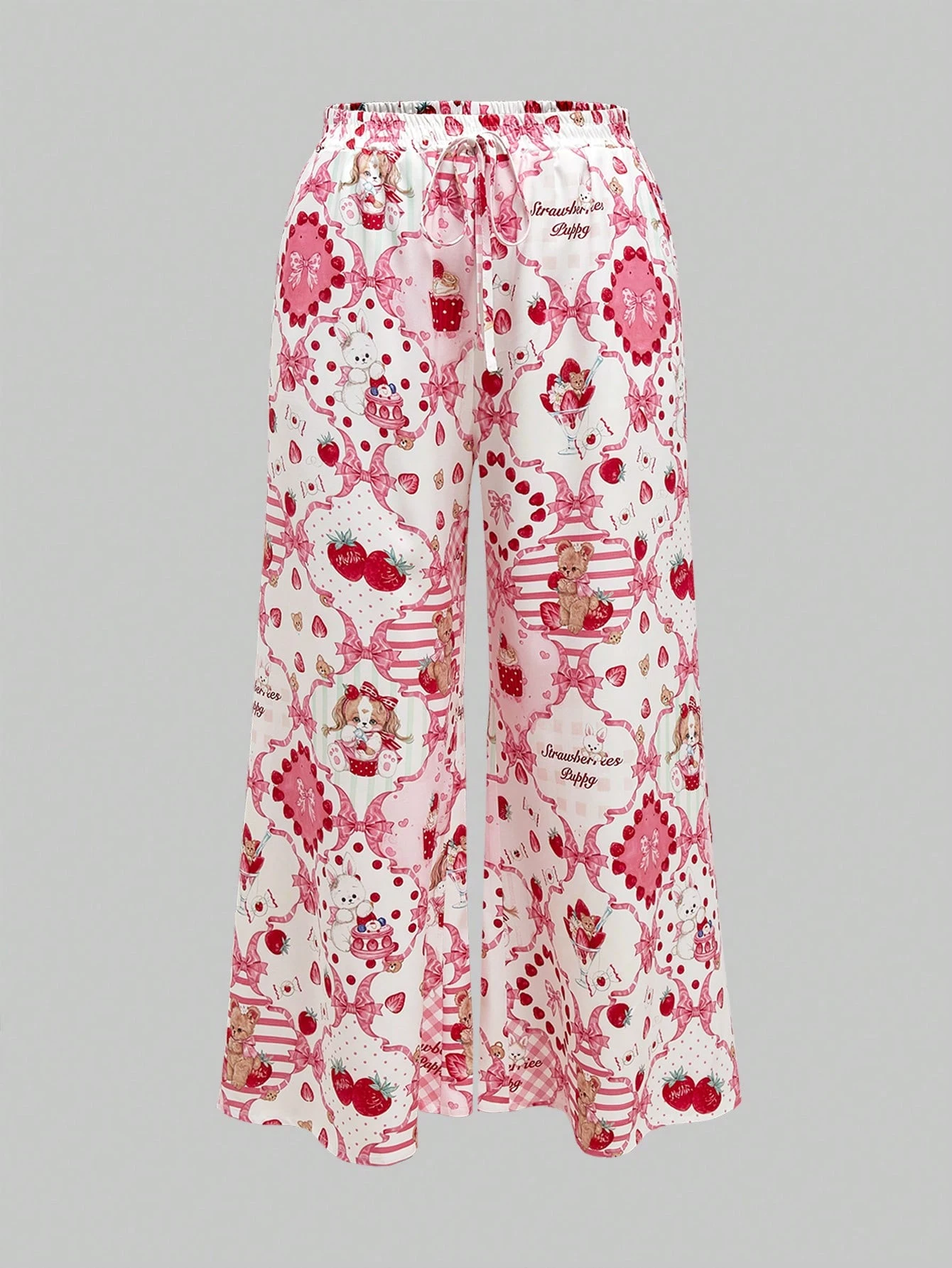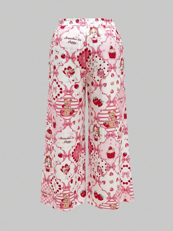 Kawaii Gerade Hose in Große Größen für Damen mit niedlichem Karomuster, Bär- und Schleifenprint