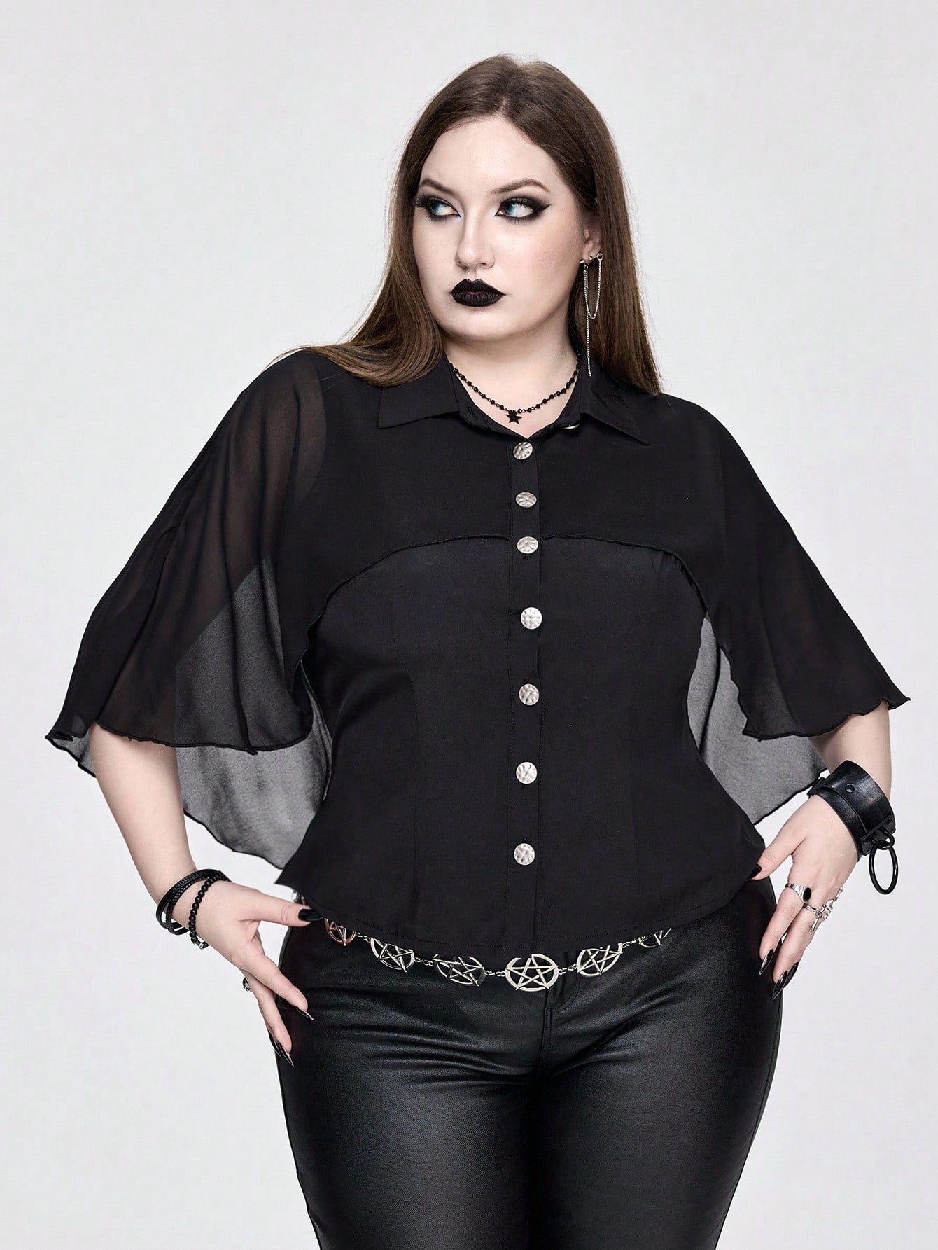 Große Größen Damen Gothic Vintage Chiffon Patchwork Fledermausärmel Bluse, geeignet für verschiedene Anlässe