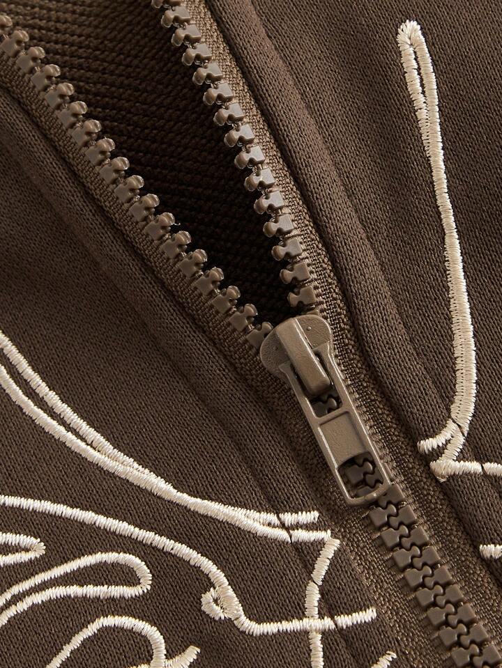 Hoodie Mit Reißverschluss, Bedruckt Mit Schmetterlings- Und Buchstabenmuster, Für Frauen Große Größen