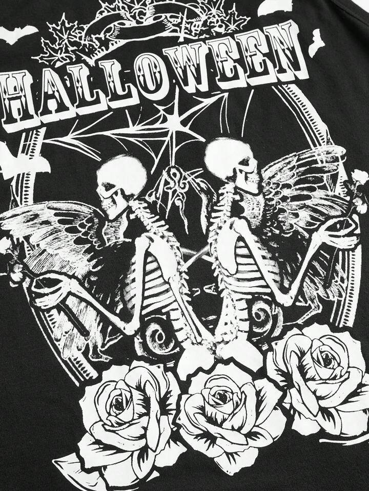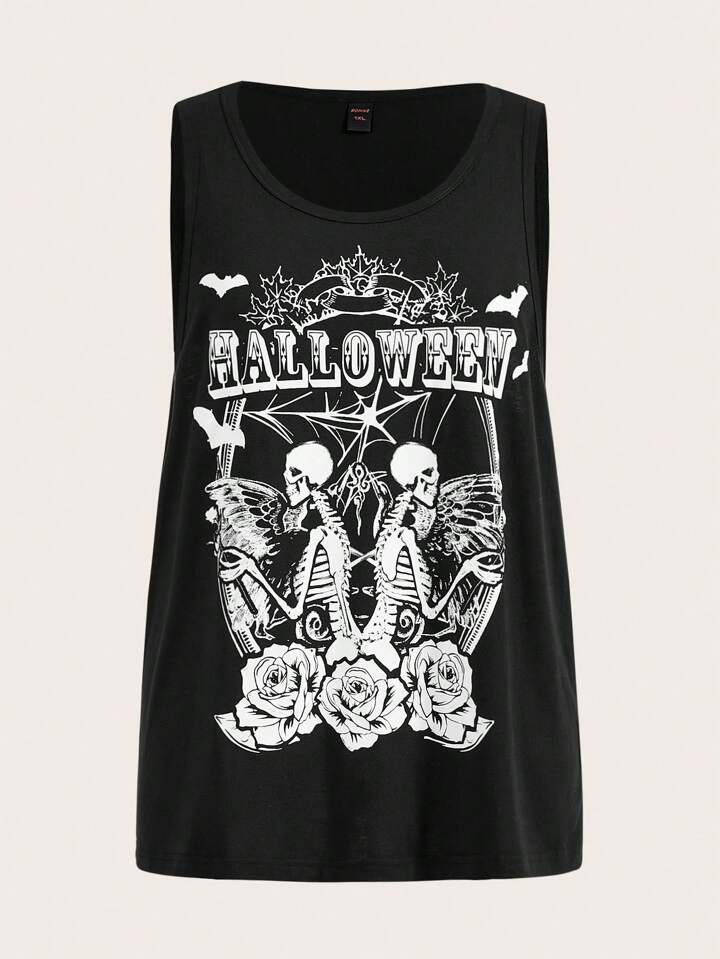 Große Größe Tank Top mit Schädel & Buchstaben Grafik,