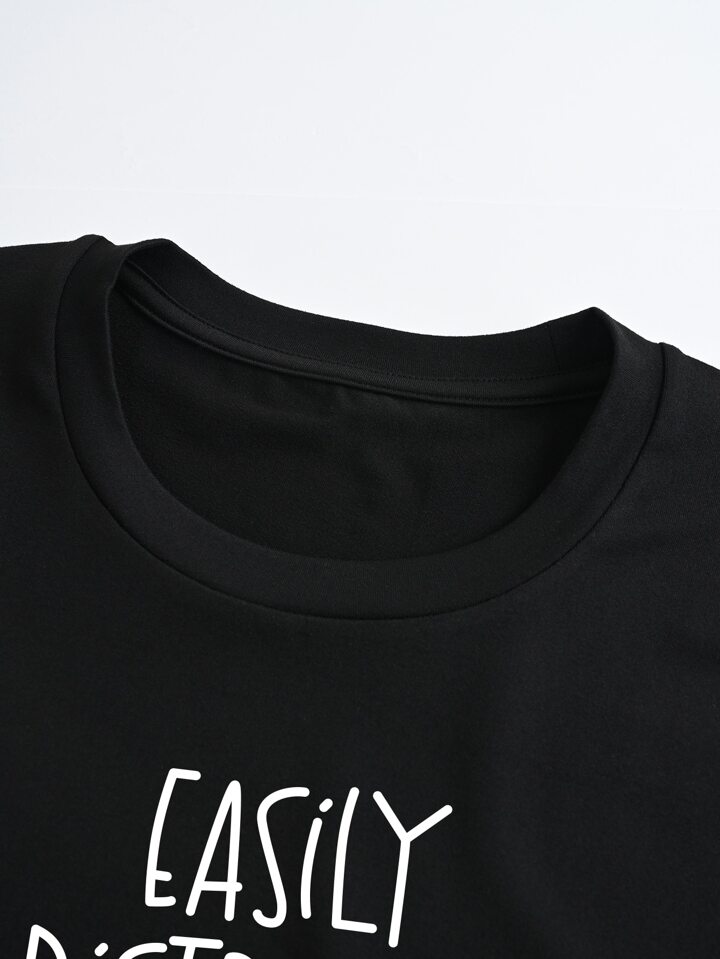 T-Shirt mit Buchstabe Muster, rundem Kragen,