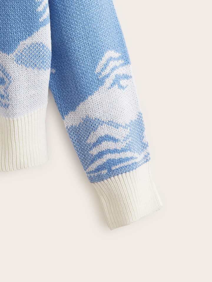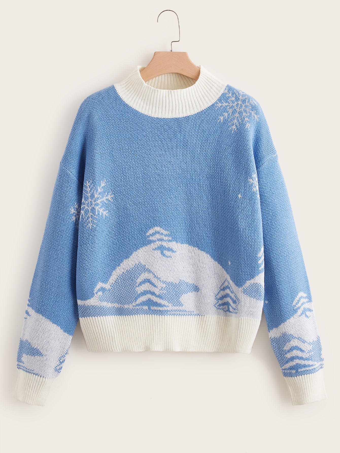 Pullover mit Schneeflocke & Baum Muster, sehr tief angesetzter Schulterpartie