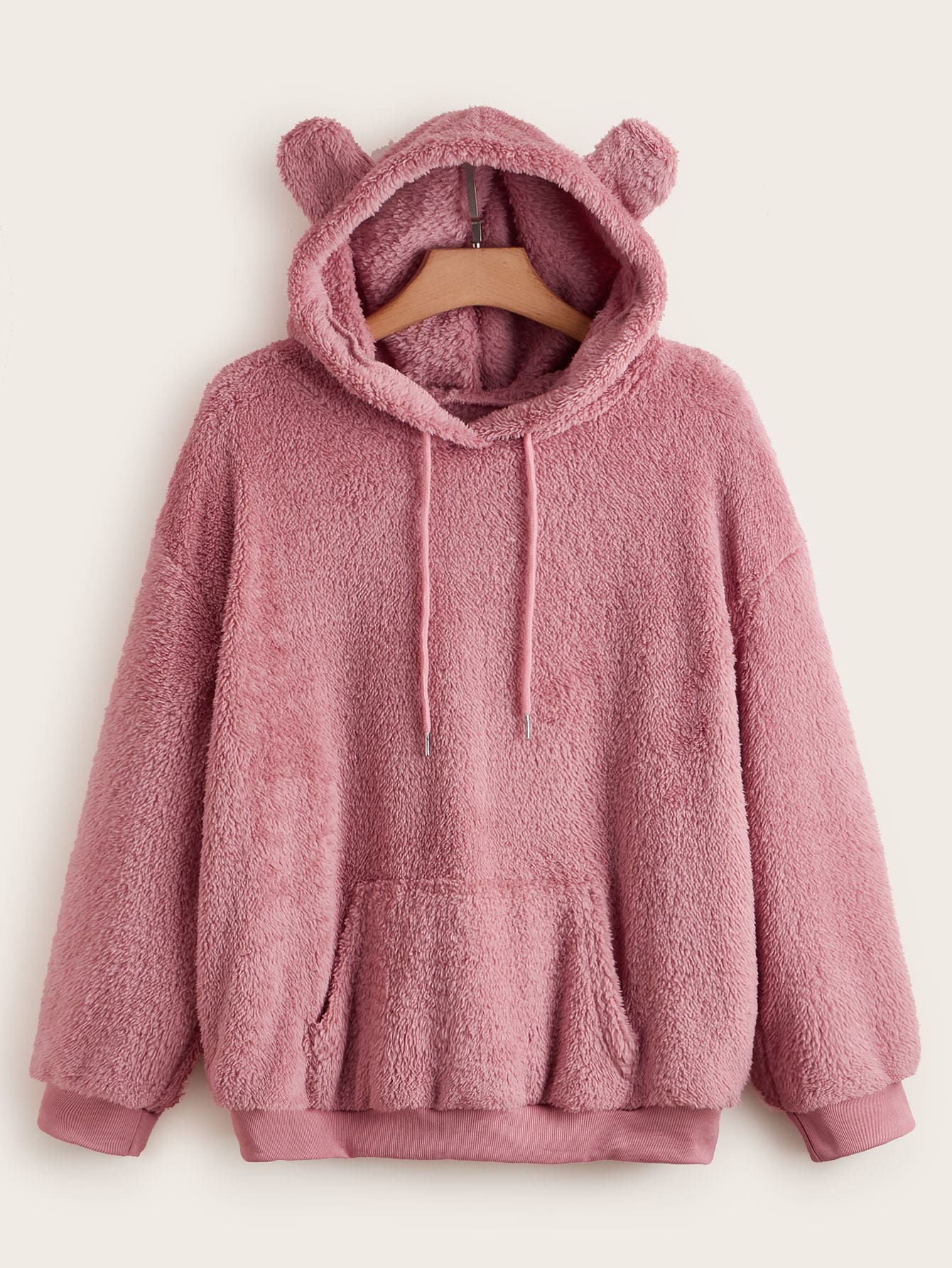 Sweatshirt mit 3D Ohren, Kapuze, Teddy