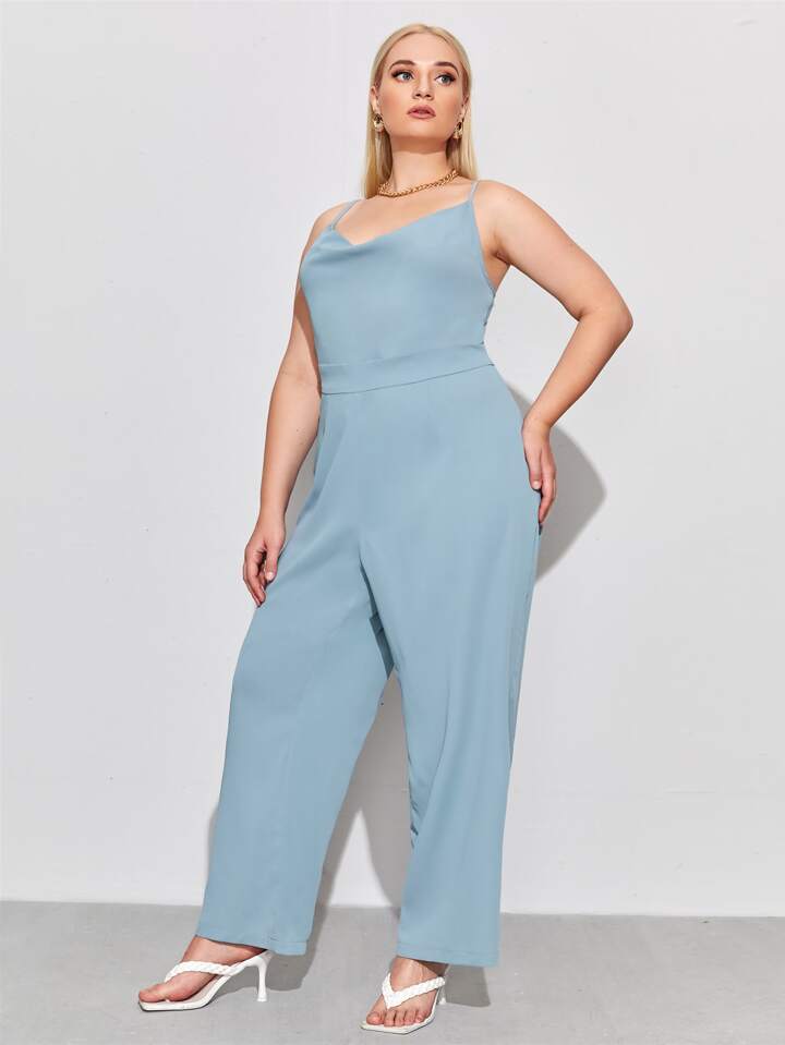 Einfarbiger Jumpsuit mit Reißverschluss hinten und weitem Beinschnitt