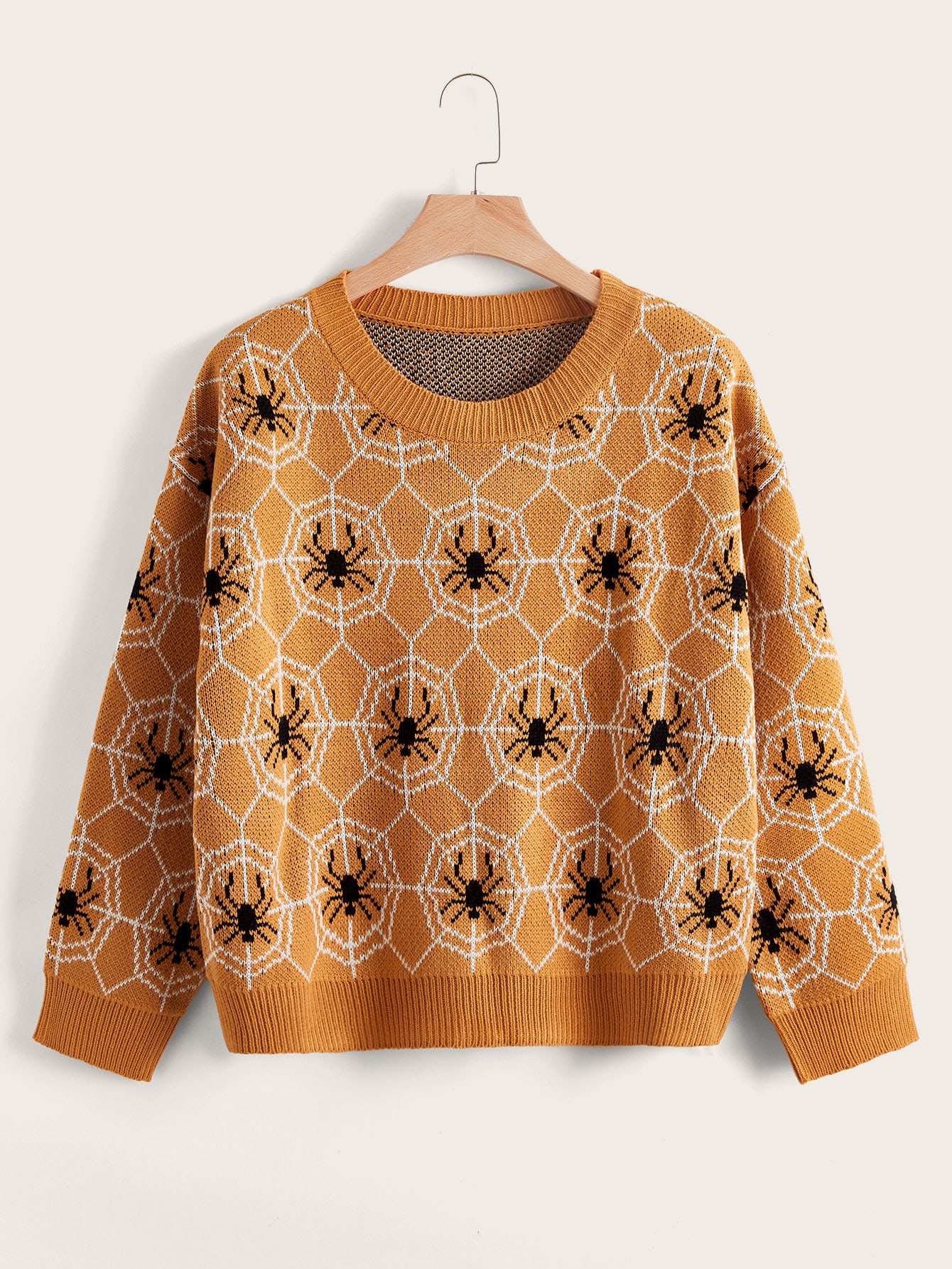 Pullover mit Spinnennetz Muster, Drop Shoulder