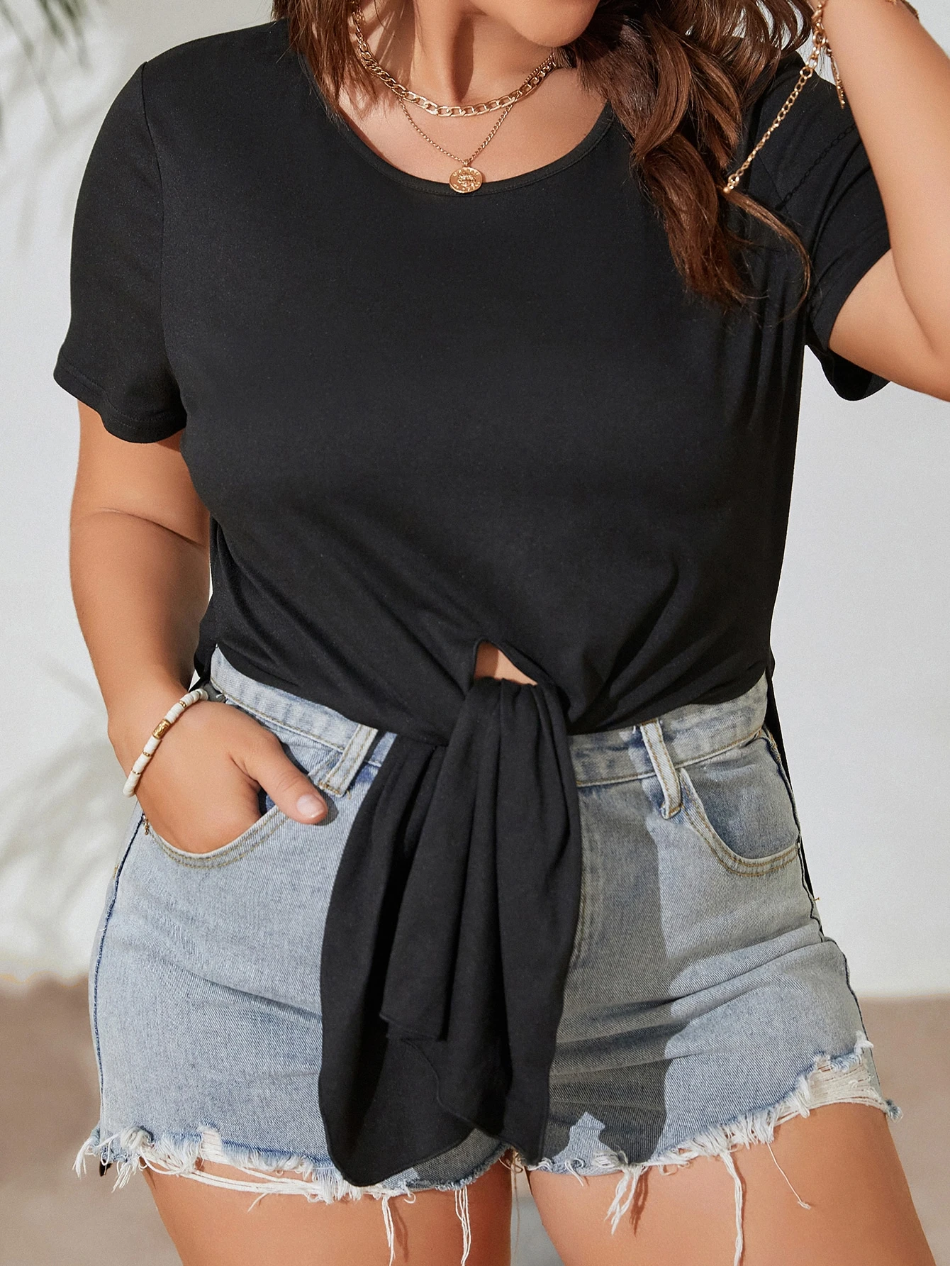 Langes T-Shirt mit seitlichem Schlitz