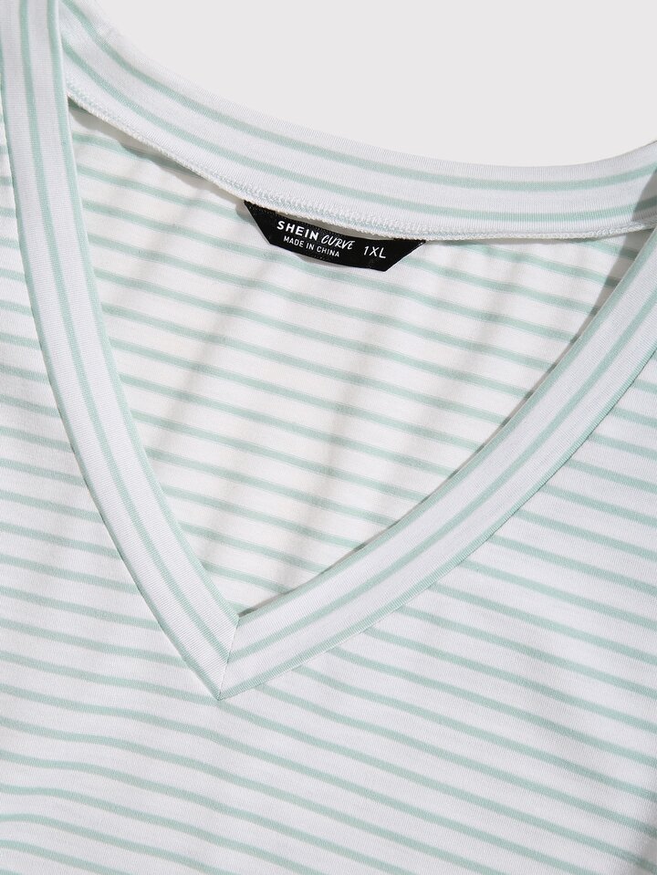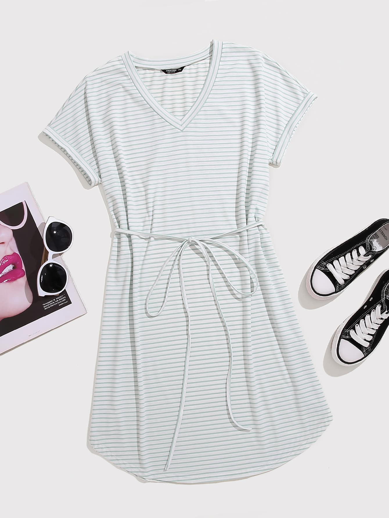Kleid mit Streifen, gebogenem Saum und Gürtel