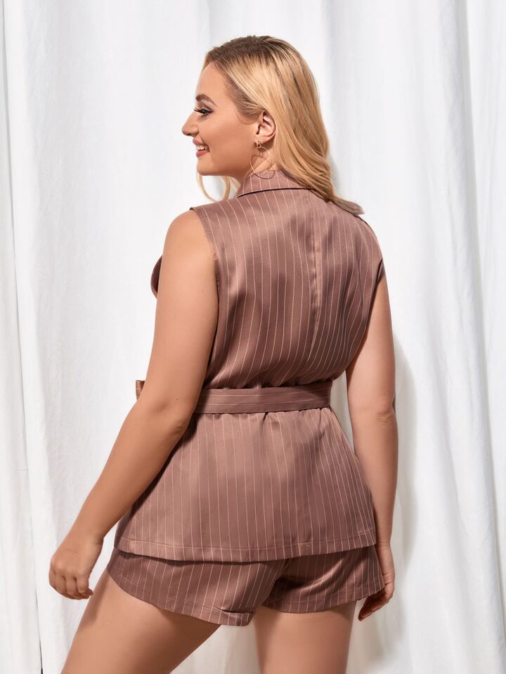 Ärmelloser Blazer mit Streifen Muster und Gürtel & Shorts