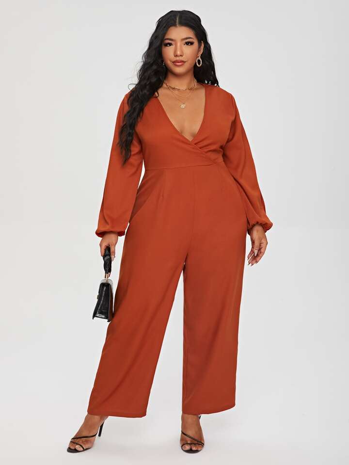 Wickeln Einfarbig Elegant Jumpsuits Große Größen