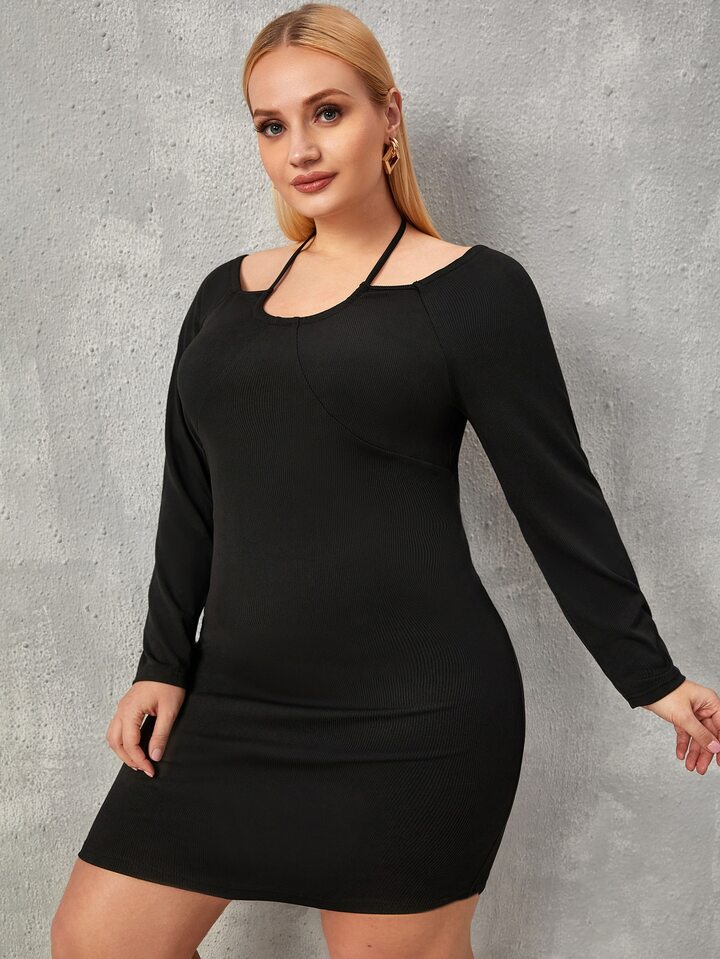 Figurbetontes Kleid mit Band hinten, Raglanärmeln