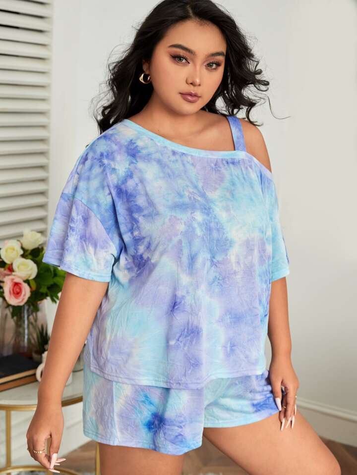 Pyjama Set mit Batik, asymmetrischem Kragen