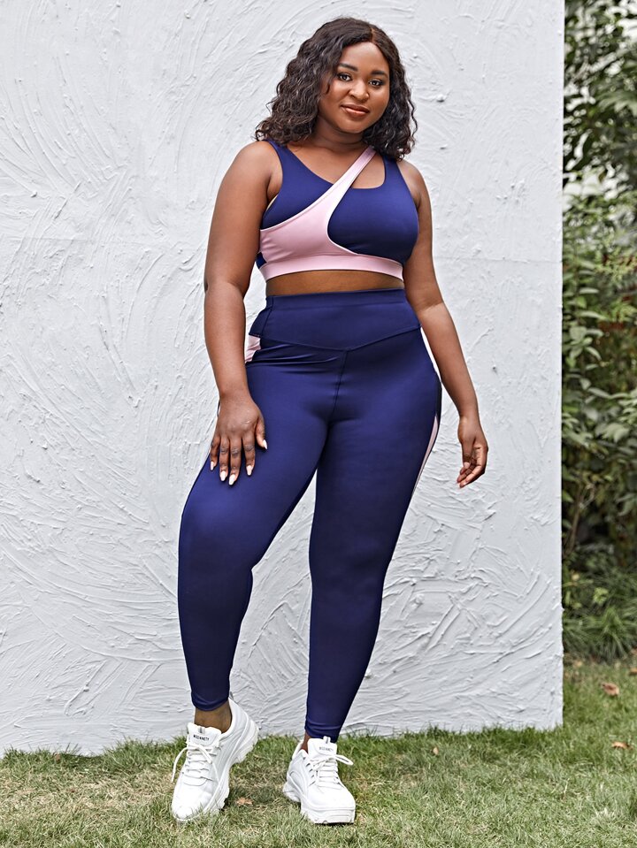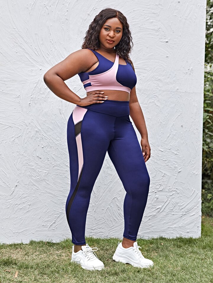 Zweifarbiger Sports BH & Leggings mit Netzstoff Einsatz