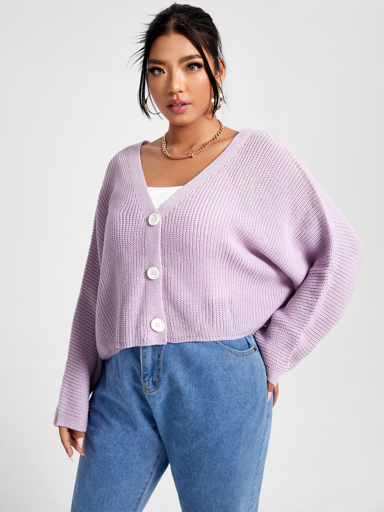 Strickjacke mit V-Kragen und Knopf vorne